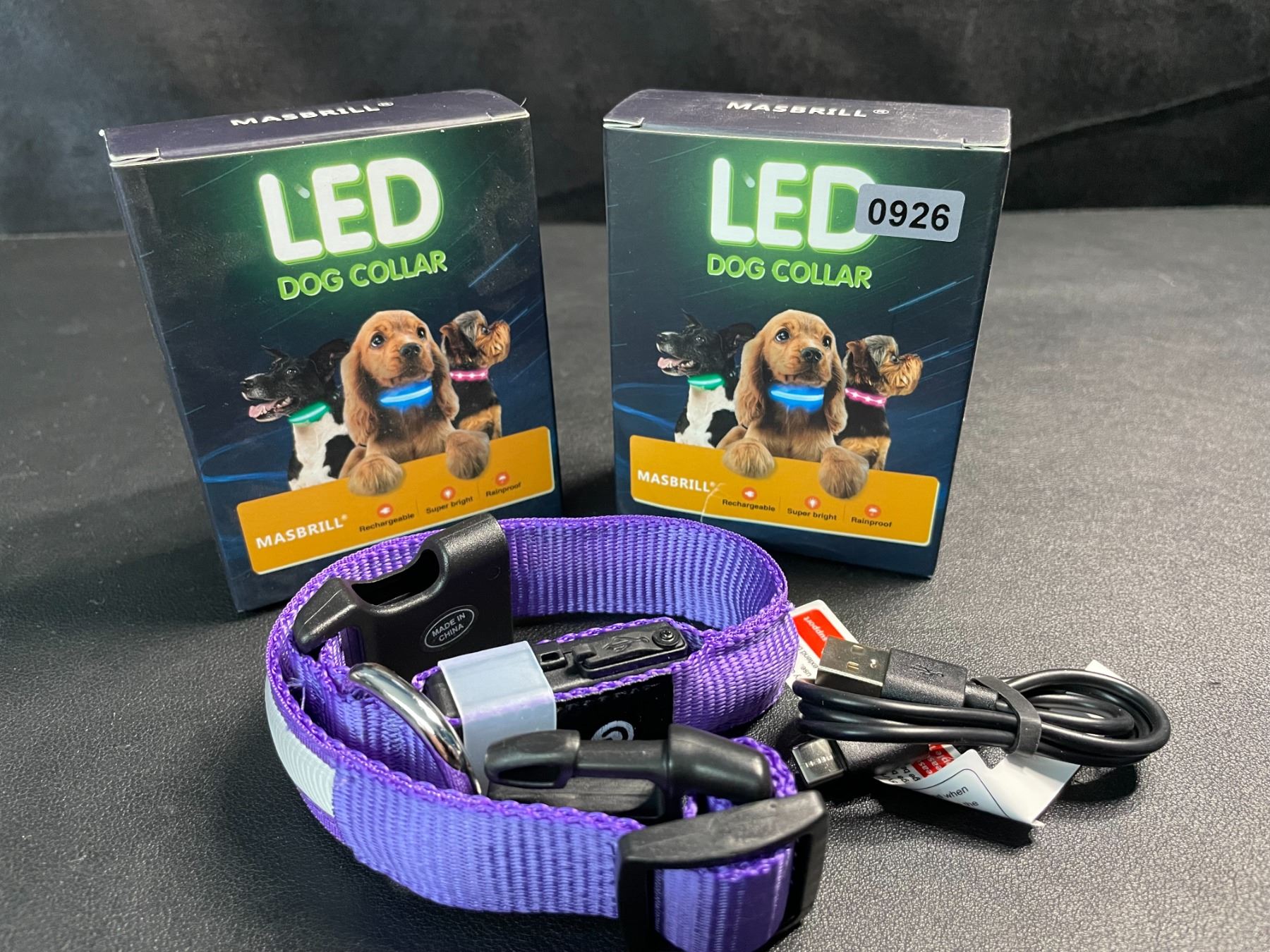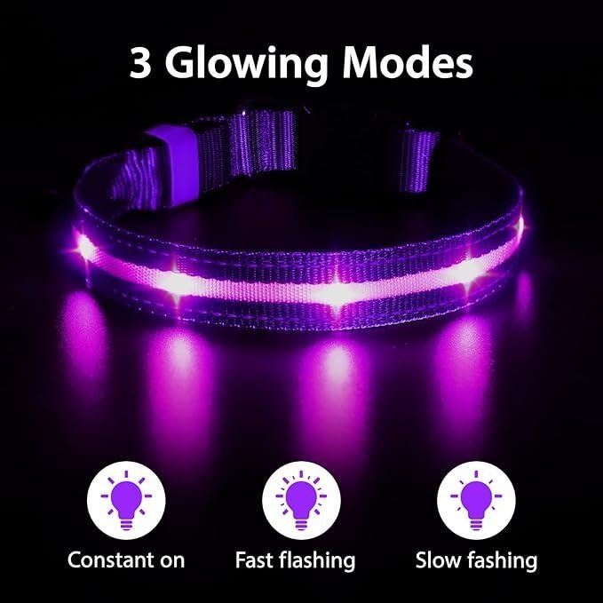 2 Masbrill LED Light-Up Dog Collars/Safety Collars - Size Small - Purple - Brand New