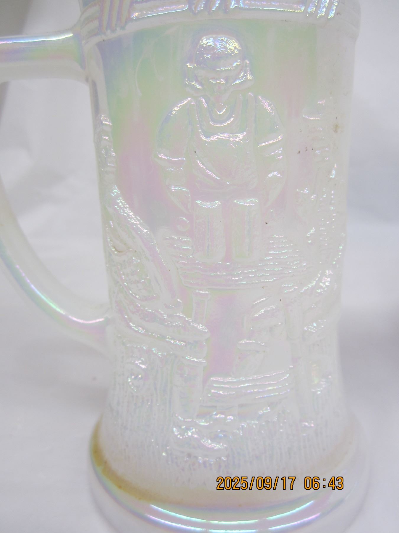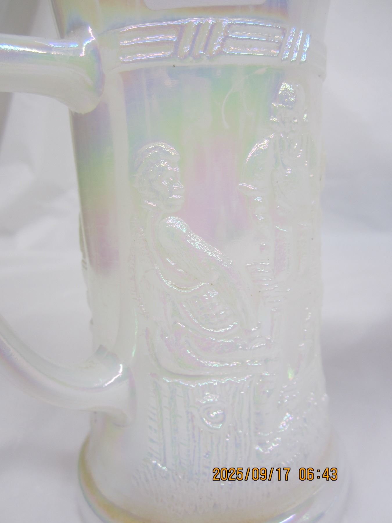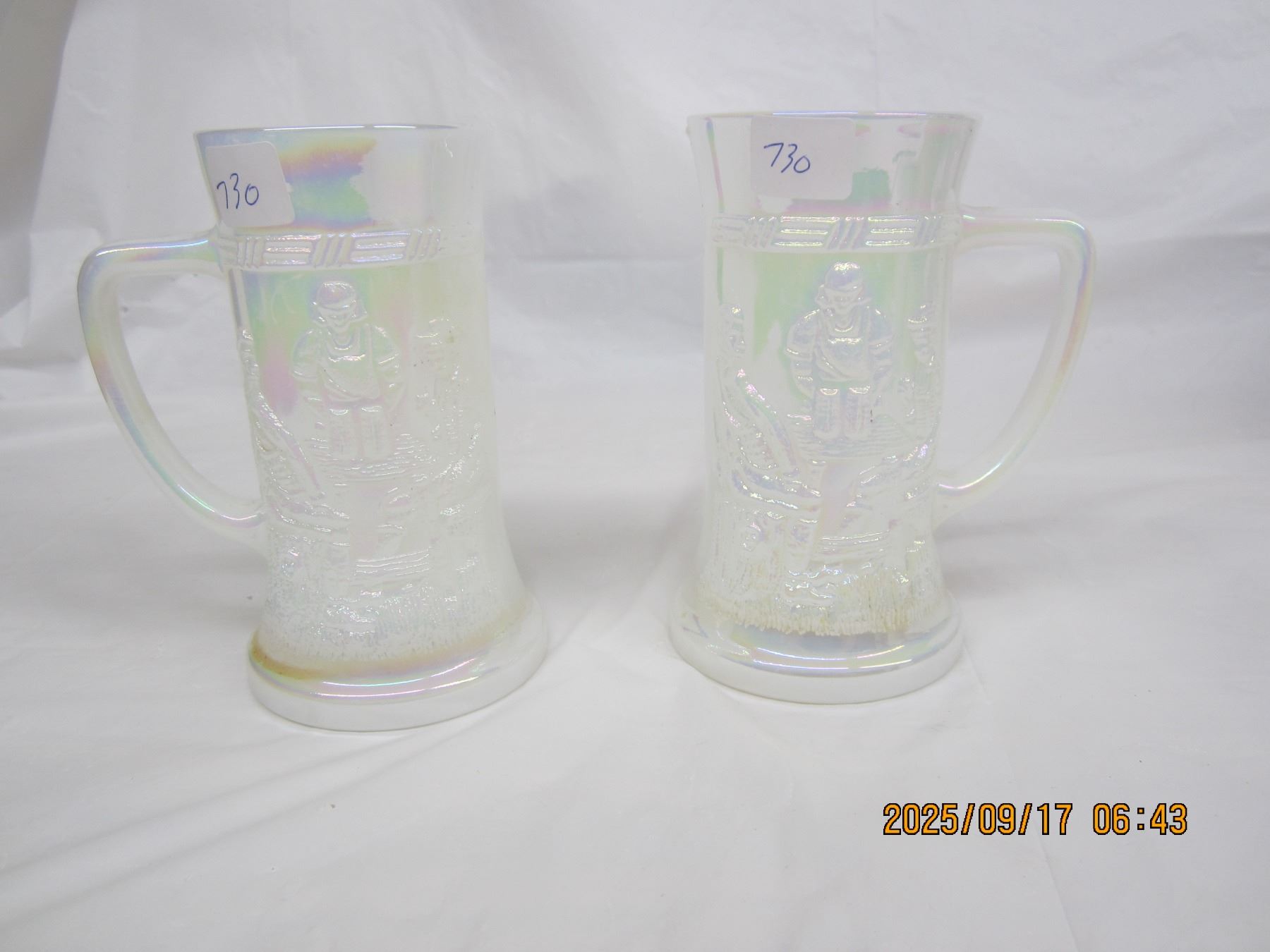 2 Matching White Carnival Glass Mugs Made by Federal 6 Inches High
