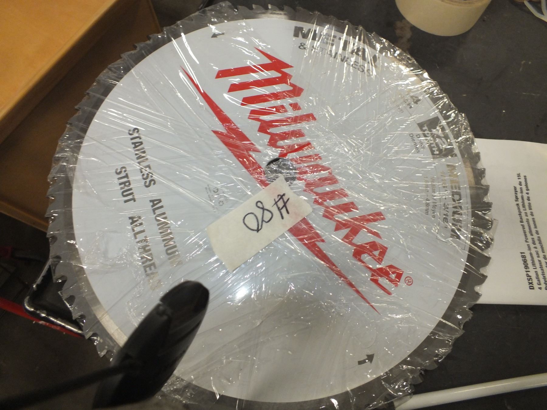 you get 1 12" Dimond blade and 1 14" 72 tooth blade...like new