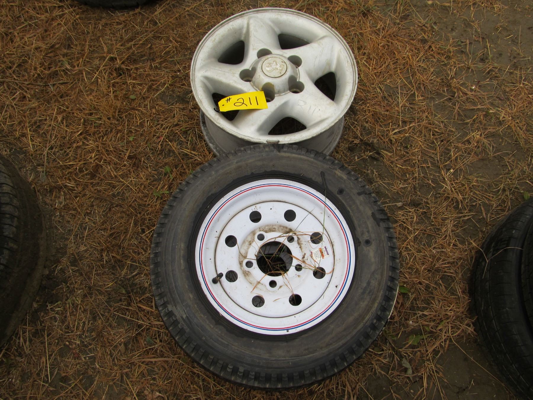 2 NEW - 5.80 X 12 TRAILER TIRES ON RIMS, 1- 5 BOLT DODGE RIM