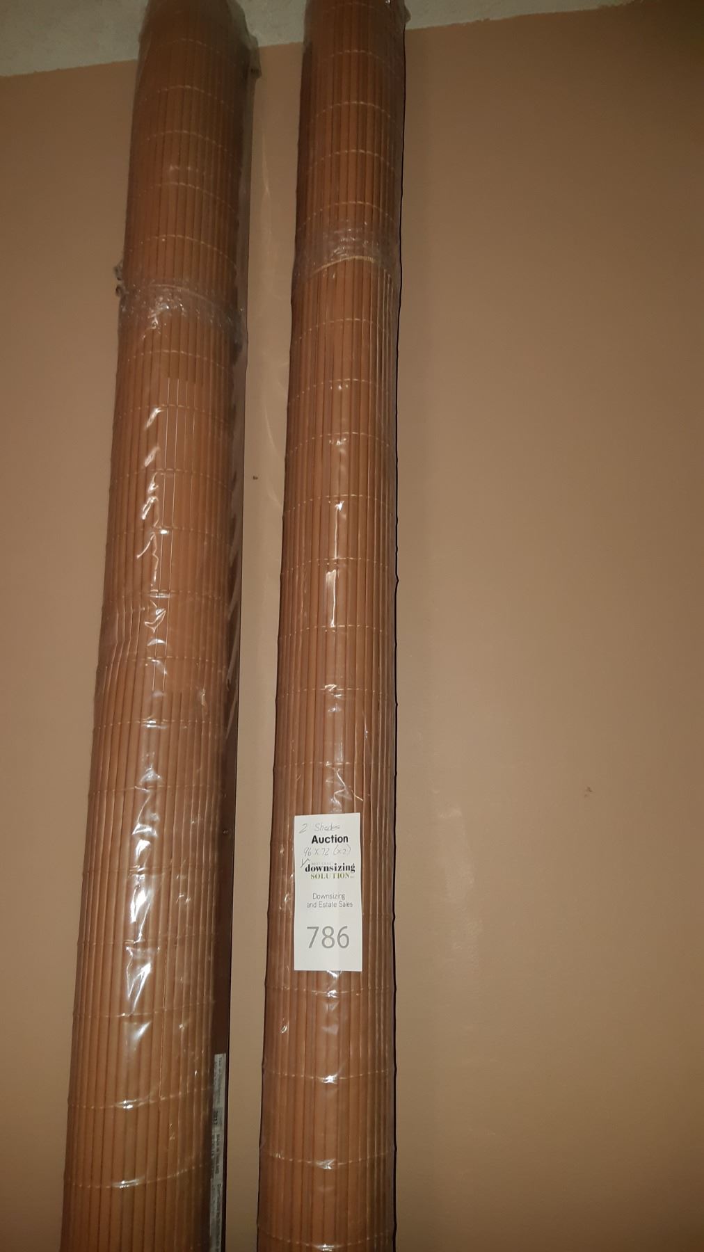 96x72. 2 roll up shades.Wood grain vinyl shades. Pick up at 11am.