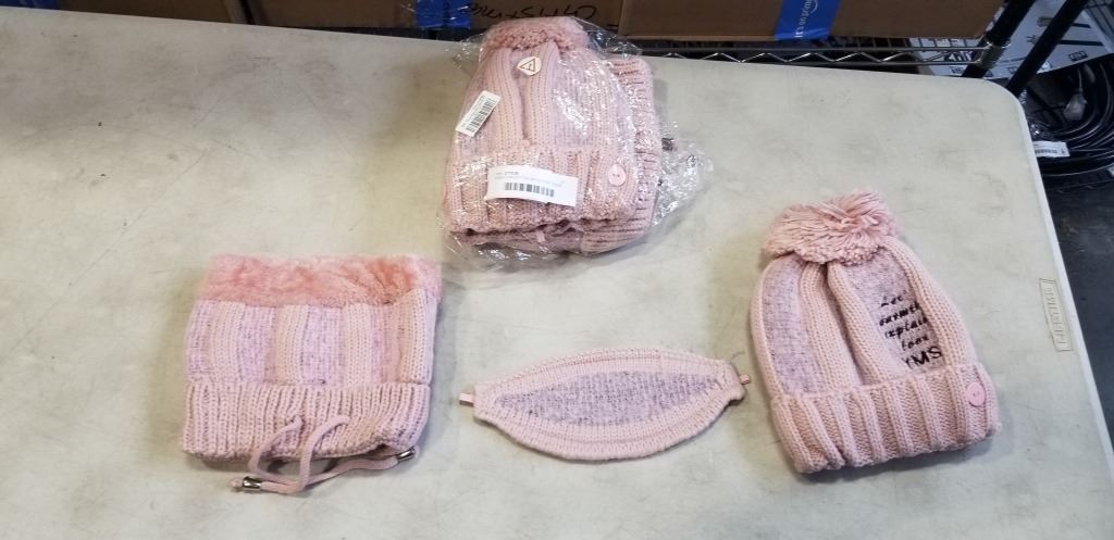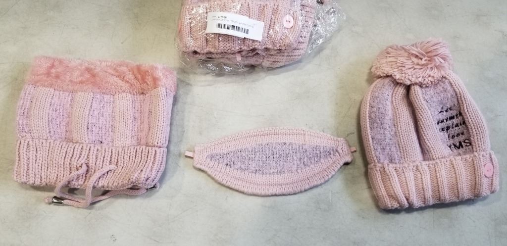 2 NEW PINK KNITTED 3PC WINTER TOQUE, NECK WARMER AND MOUTH COVER