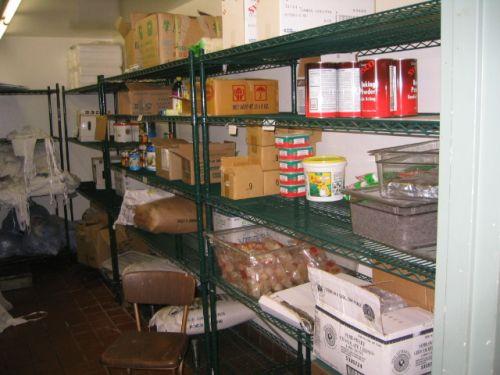 2 Green NSF approved steel storage racks approx 75" tall X 60" wide X 24" deep