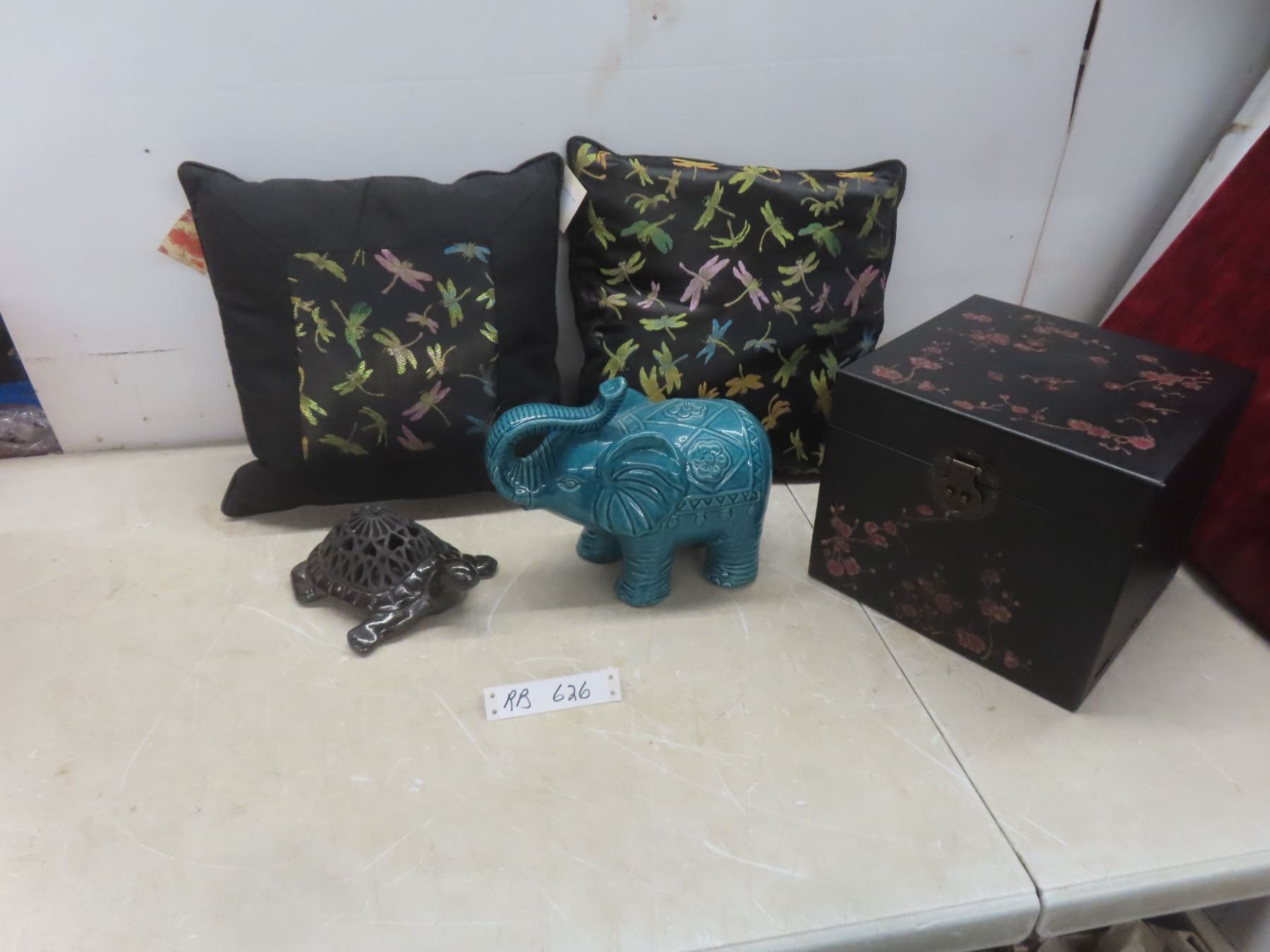 2 New with Tags Toss Pillows, Storage Box, Ceramic Elephant +