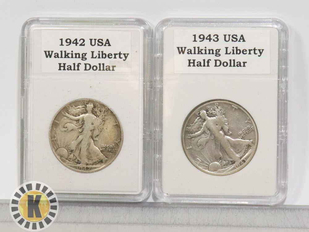 USA HALVES FROM THIS ERA ARE 90% SILVER AS OPPOSED TO CANADIAN SILVER AT 80%. 1942, 1945.***ITEM IS LOCATED IN LETHBRIDGE ALBERTA, PICKUP IS AT OUR LETHBRIDGE LOCATION ONLY, WORLDWIDE SHIPPING IS AVAILABLE***