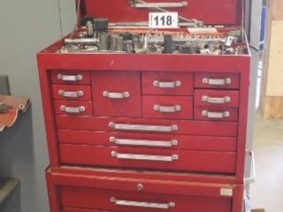 2 PIECE TOOLBOX C/W CONTENTS - WRENCHES, SCREWDRIVERS, SOCKETS