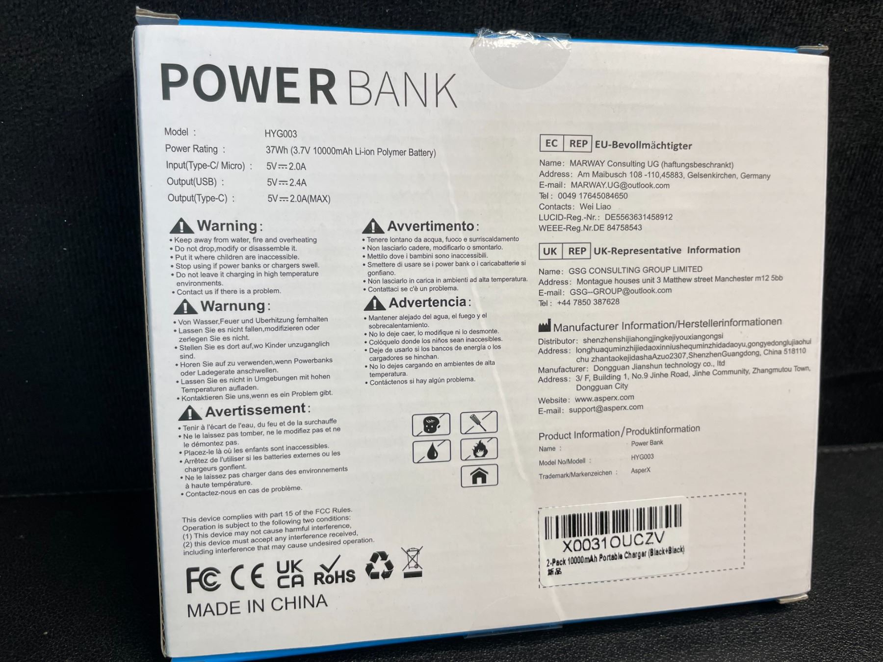 - 2 powerbanks/portable chargers included in box (10,000mah each)
