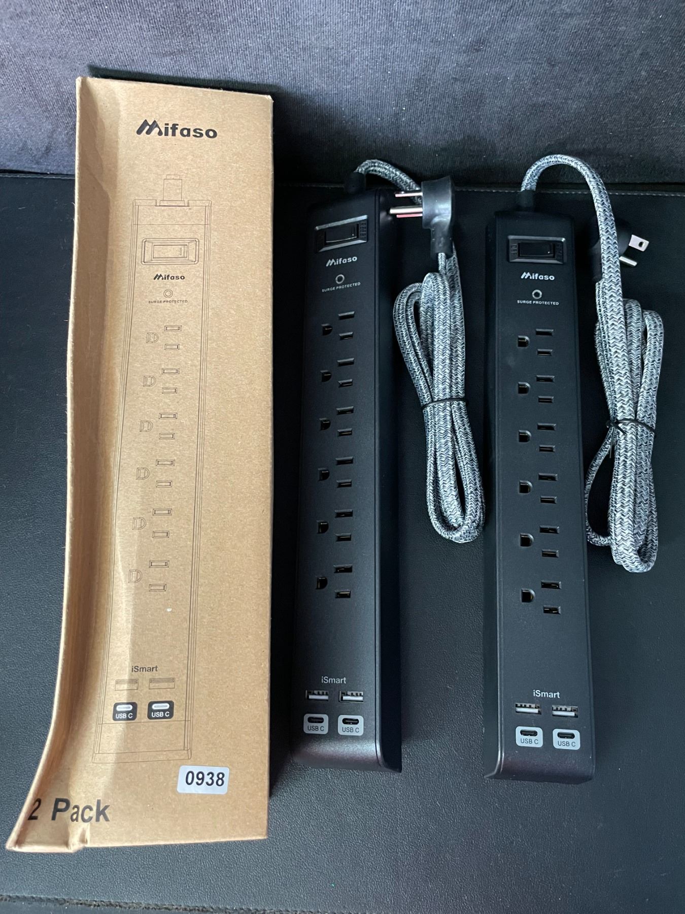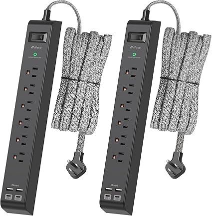 2 Pack Power Bar - Surge Protector with 6 Outlets 4 USB Charging Ports, Braided Extension Cord, Flat Plug, Overload Protection, Wall Mount for Home Office (Black)