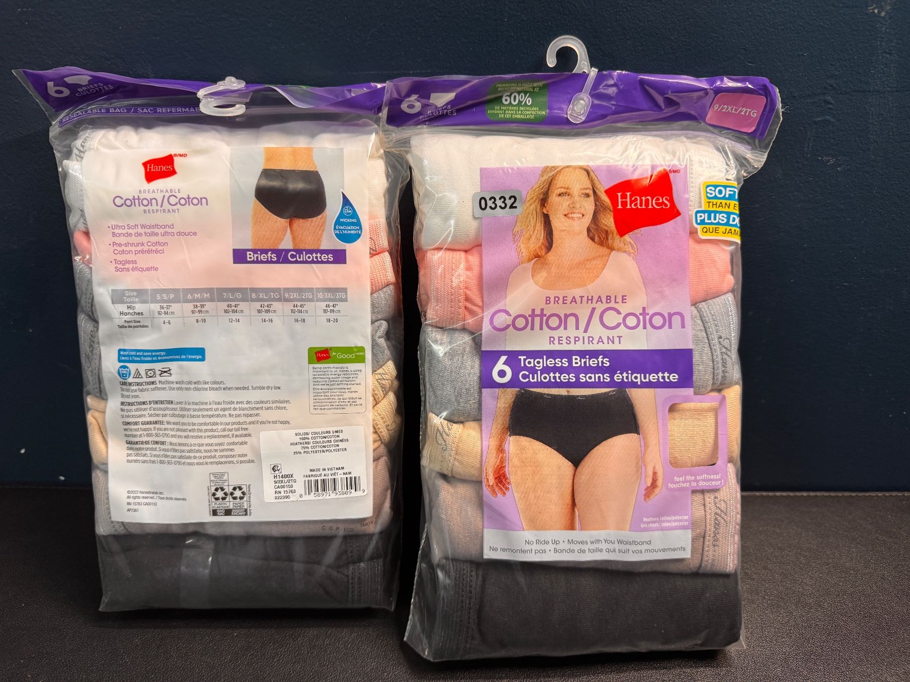 2 Packs of Hanes 2XL Breathable Cotton Tagless Briefs - 6 Per Bag