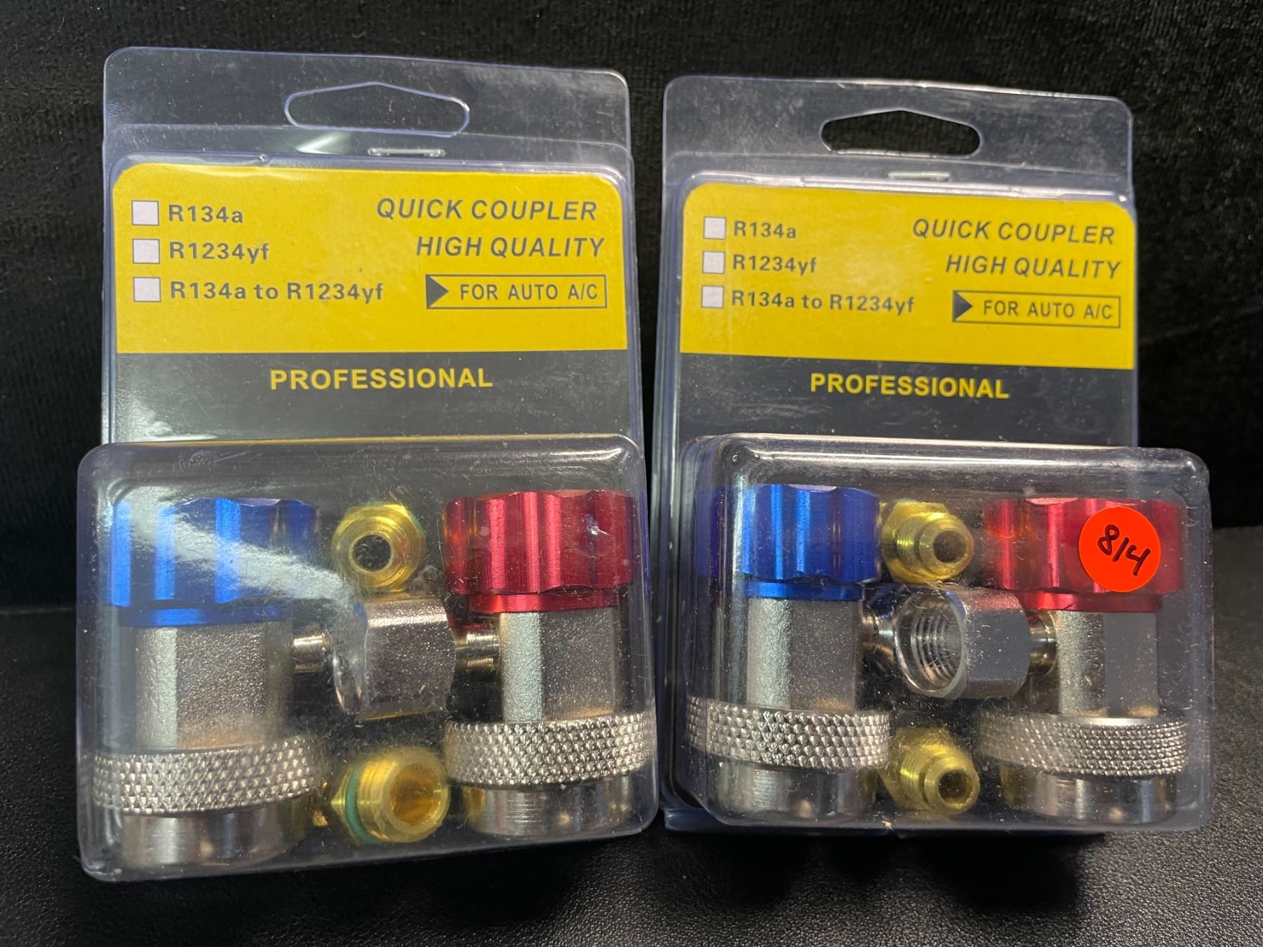 R134a Quick Coupler Adapter 2 Pack, QC R134a Adapters and AC Hose Fittings, HP and LP Connectors for R134a Car AC System Evacuation Recharging and More, 1/4" Flares, 2 per pack