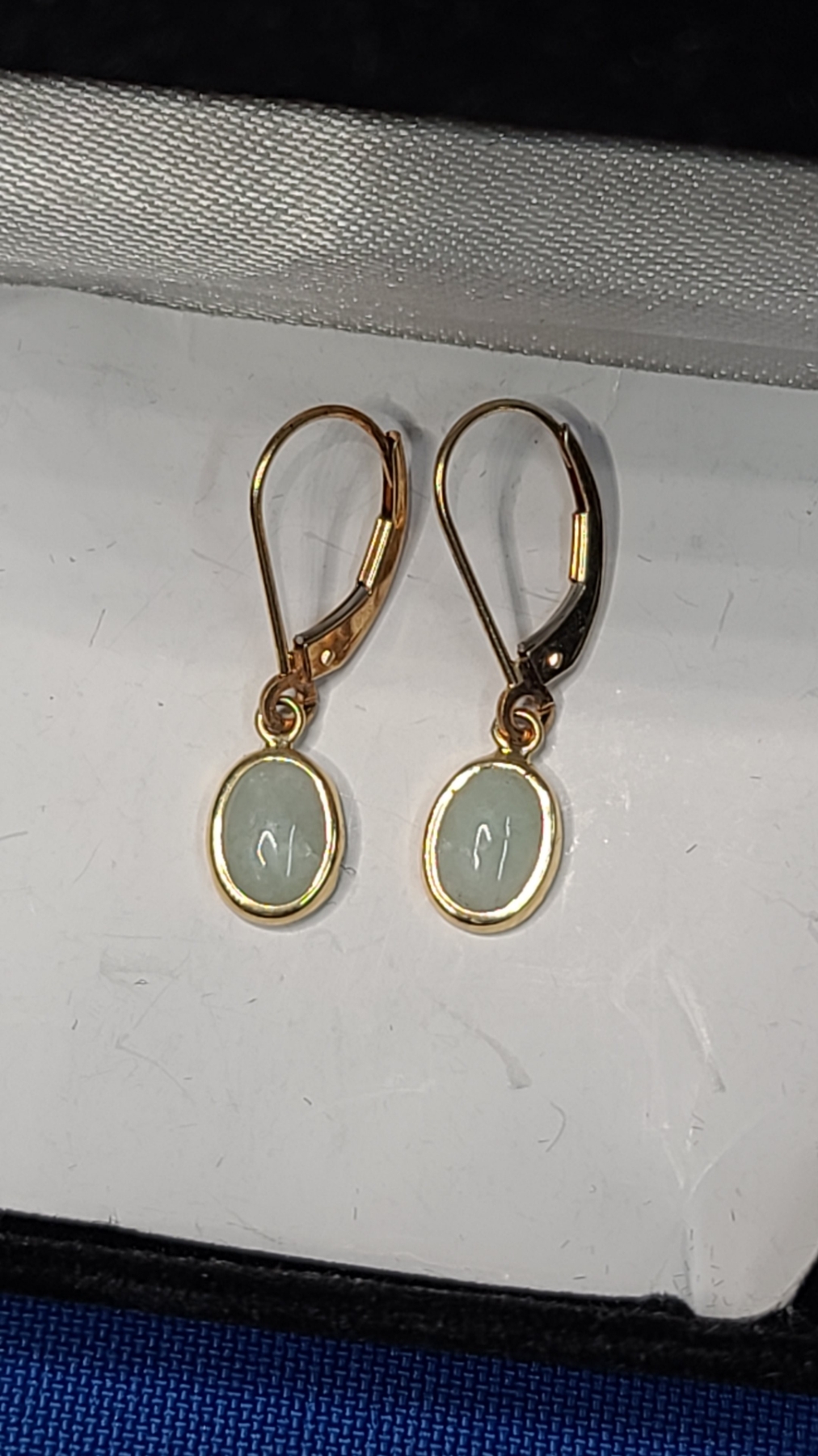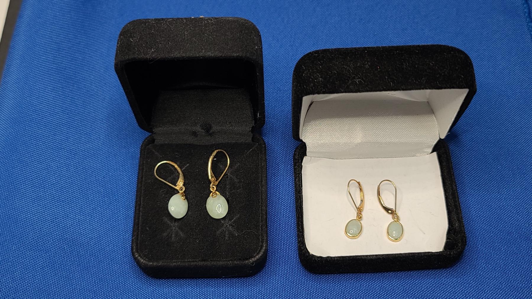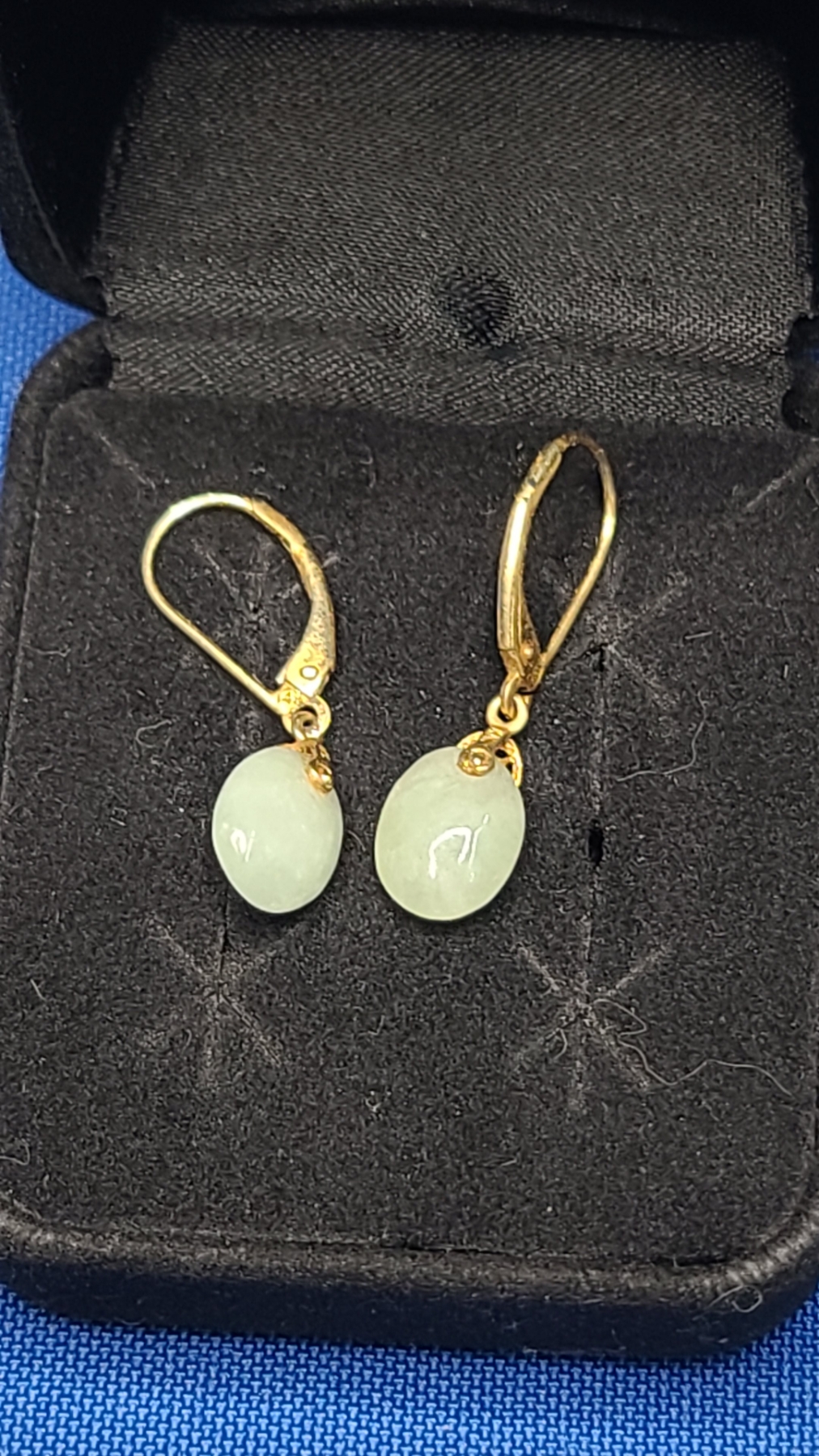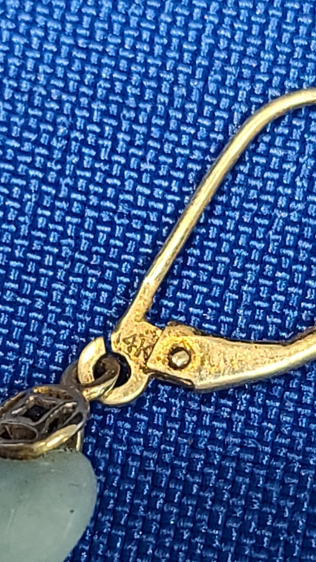 (2) Pairs Of 14K Gold Jade Dangle Earrings - Total Weight: 3.6g