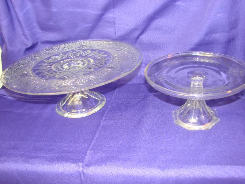 2 Pedestal cake plates:Clear sandwich glass & crystal,8 1/2" & 13 1/2"