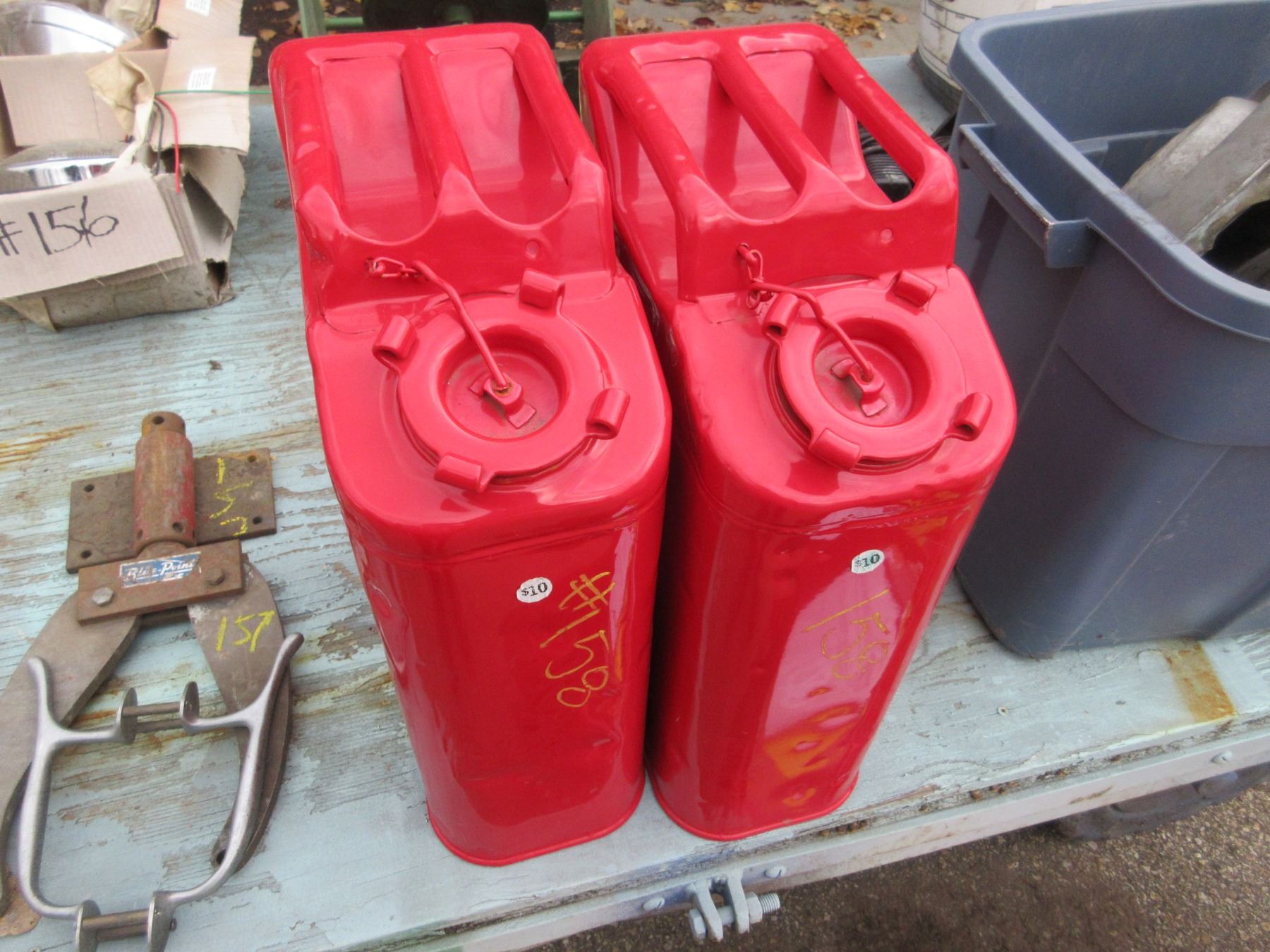 2 RED METAL GAS CANS (BOTH FOR ONE MONEY)