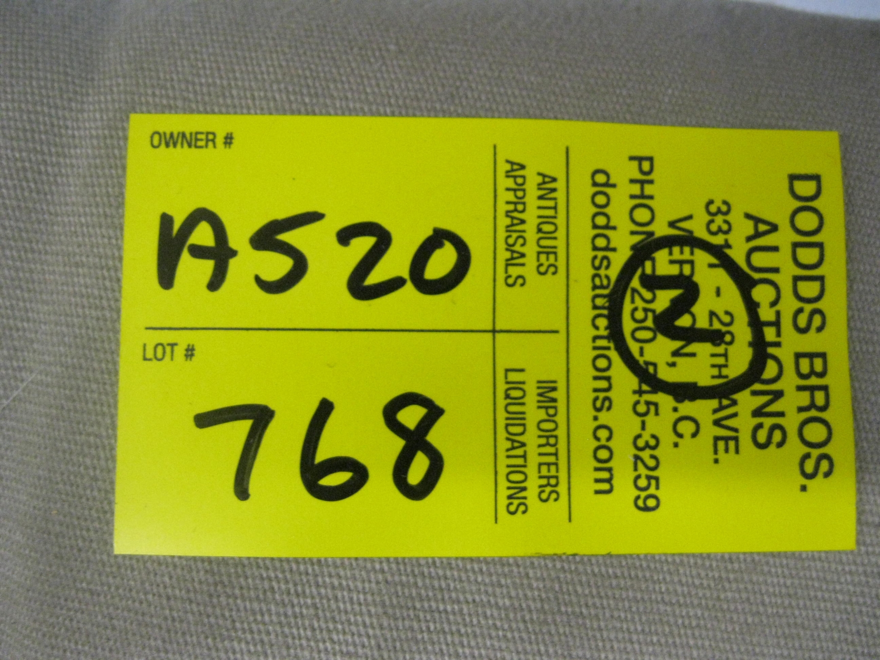 Shipping will be via Canada Post including insurance (unless advised otherwise) at the rate of $2.75/$100 and costs will be determined after the auction and charged to the credit card you registered with on Live Auction World. Dodds Auction is not responsible for any damage incurred through shipping. We DO NOT provide shipping quotes.