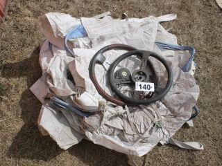 2 STEERING WHEELS, QUANTITY OF GRAIN TOTES