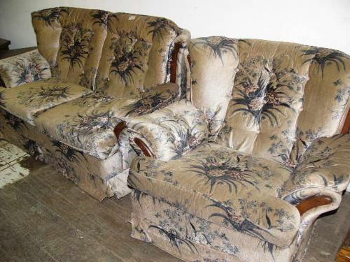 2 Seated Sofa and Arm Chair, Tannish Blue with Accents (169)