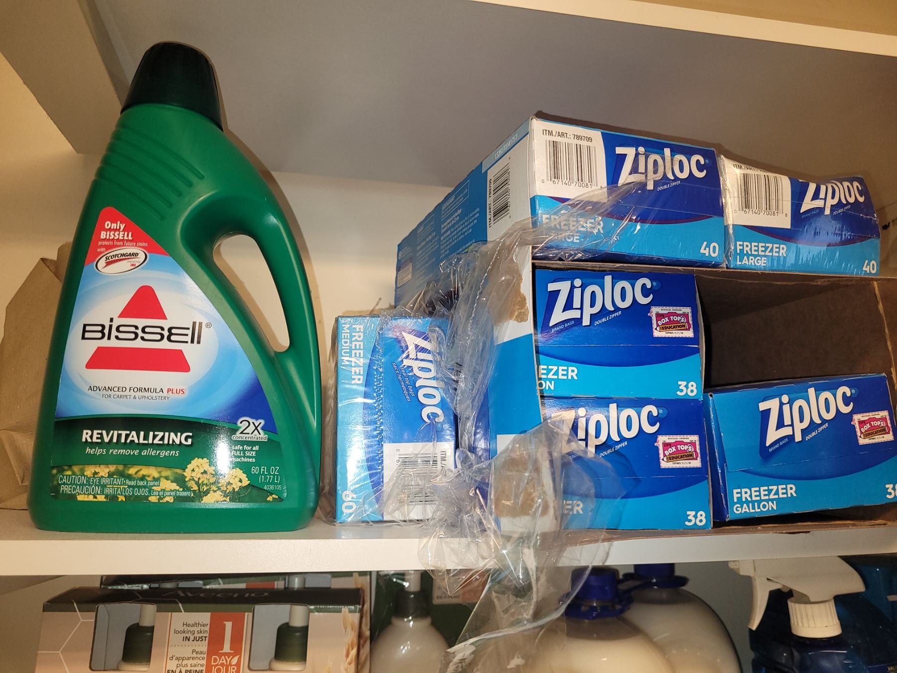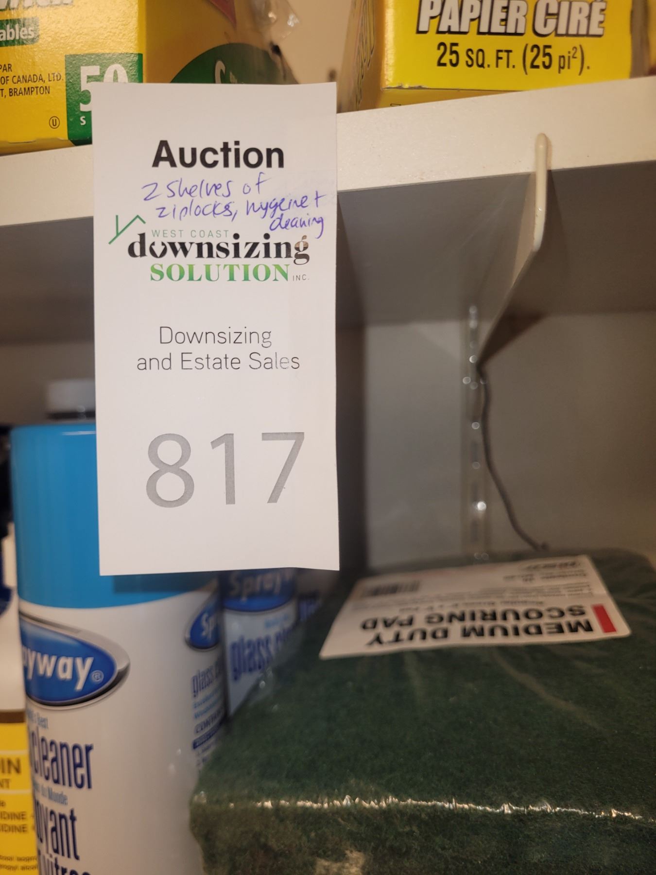Ziplock, hygiene and cleaning products. Category A. Pick up at 9am.