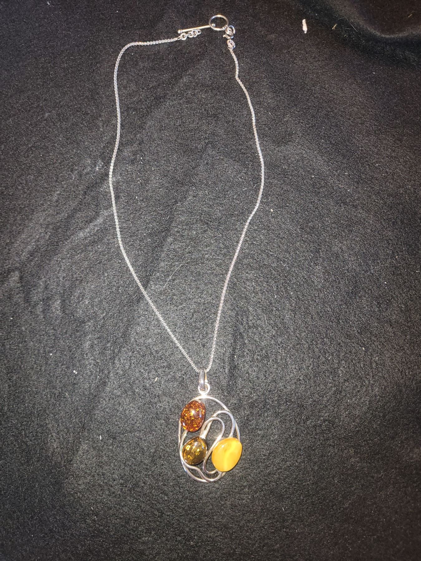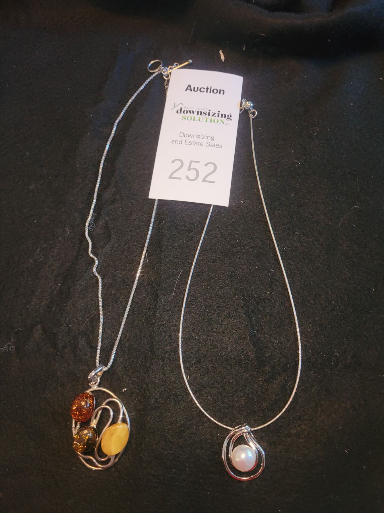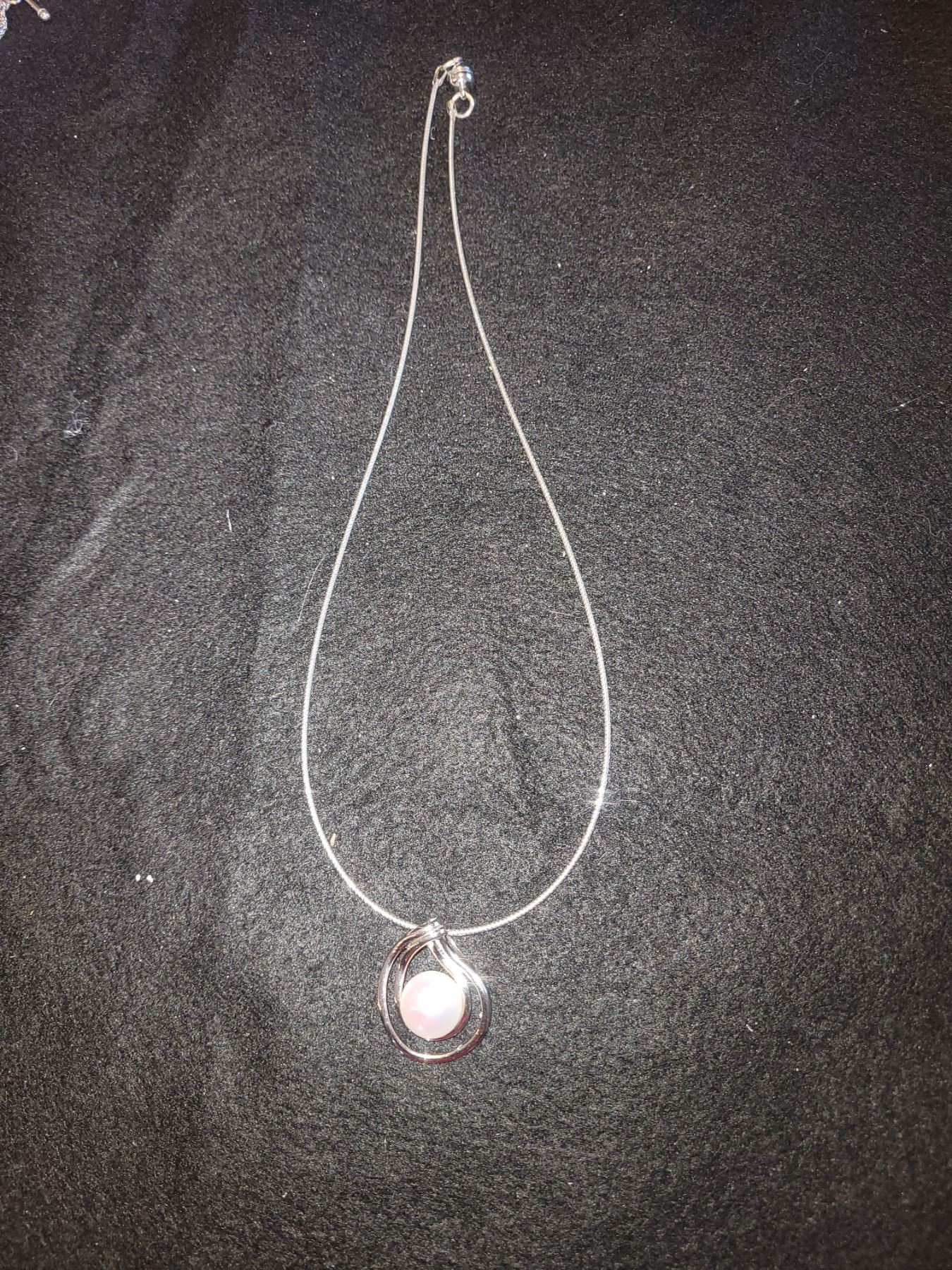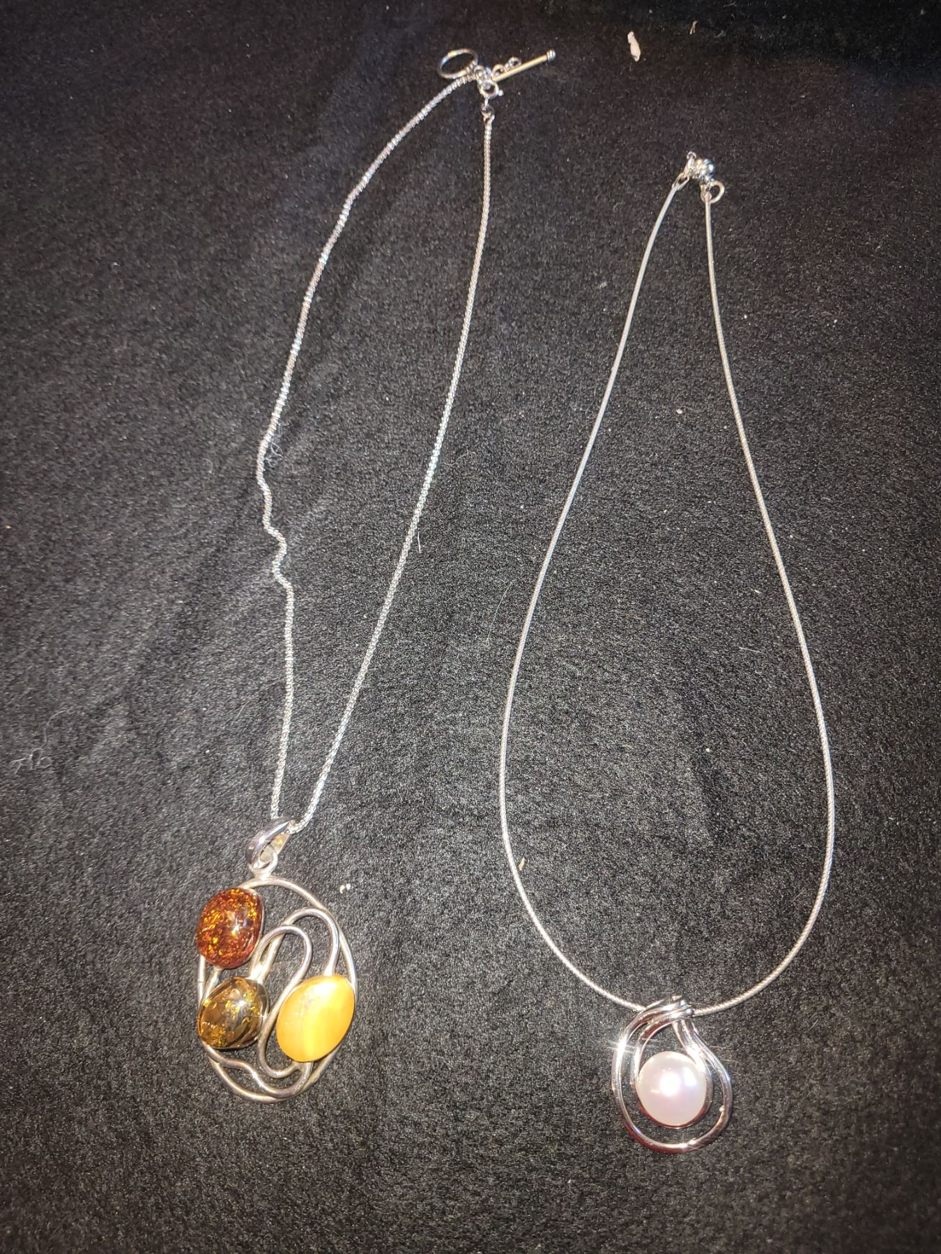 Pearl pendant 925 on a 16" chain stamped MJI. Italian 18"- 925 chain, pendant 3 stones no markings. Pickup at 9 am