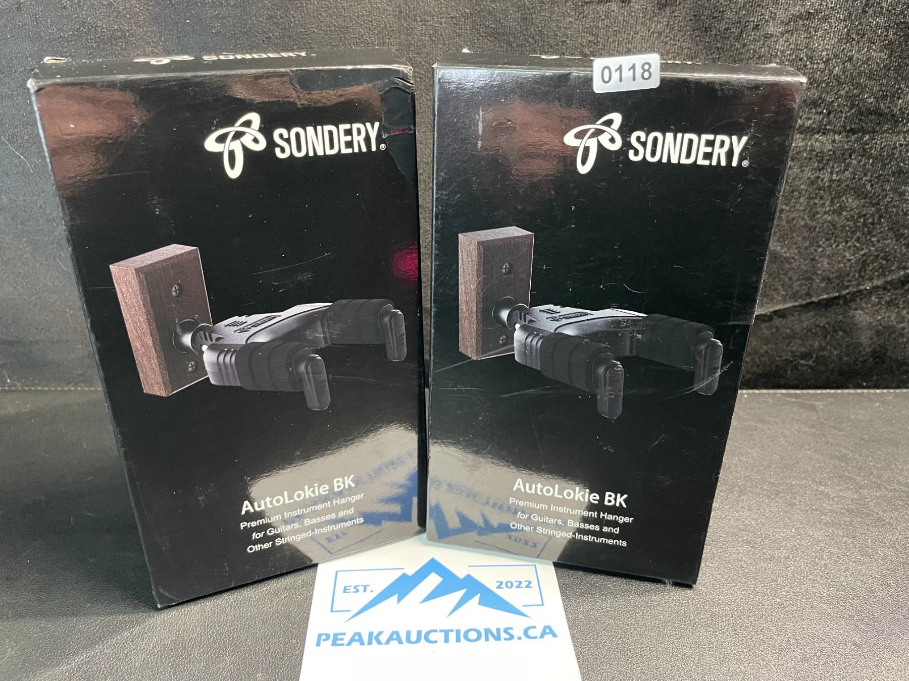 2 Sondery AutoLokie BK Premium Instrument Hangers for Guitar & Other String Instruments - New