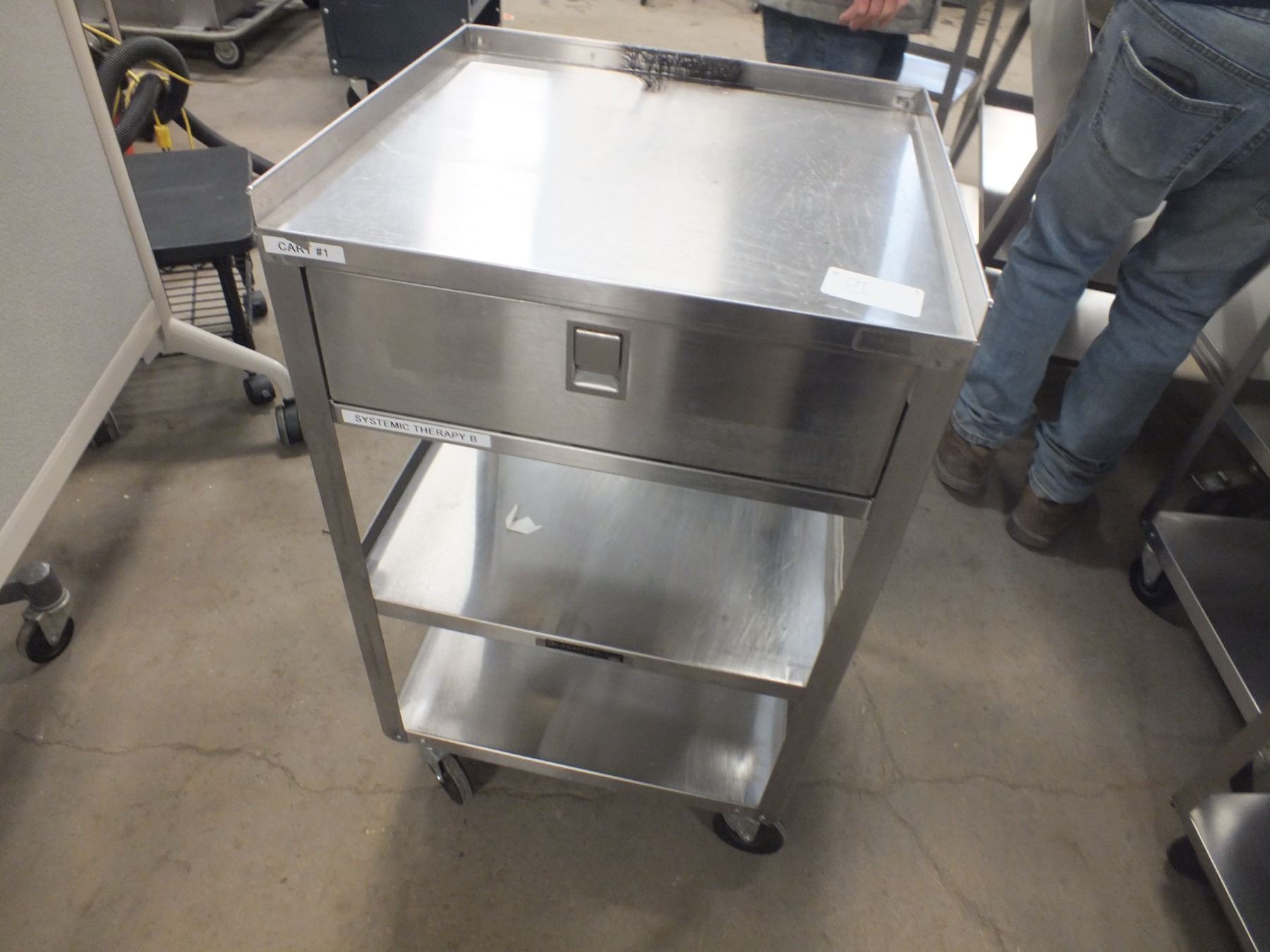 2 Stainless Steel Tables On Wheels, 18 1/2"l 17 1/2"w 29"h...used