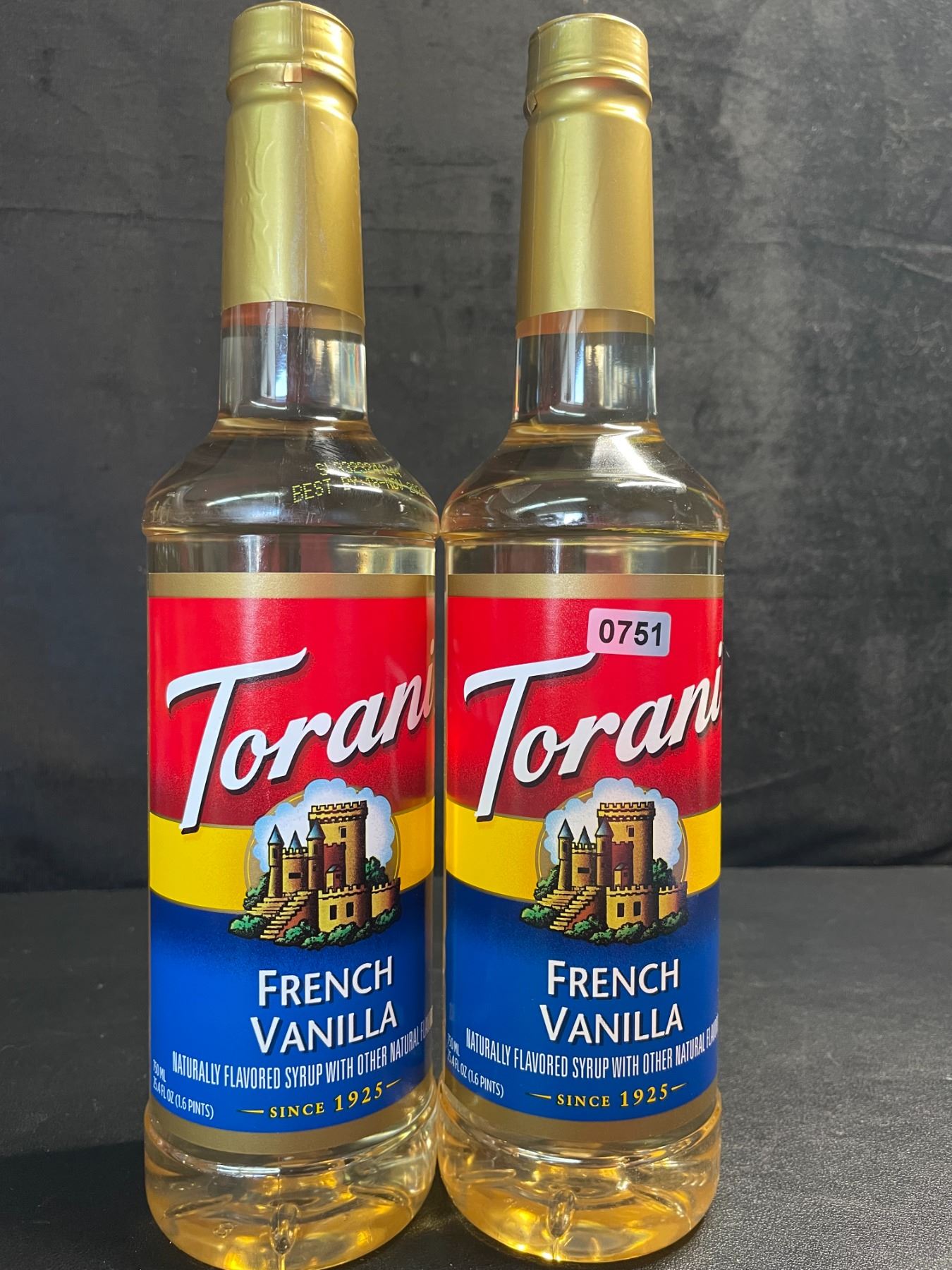 2 Torani French Vanilla Naturally Flavored Syrups (750ml) - New Sealed (BB: NOV 18/2026)