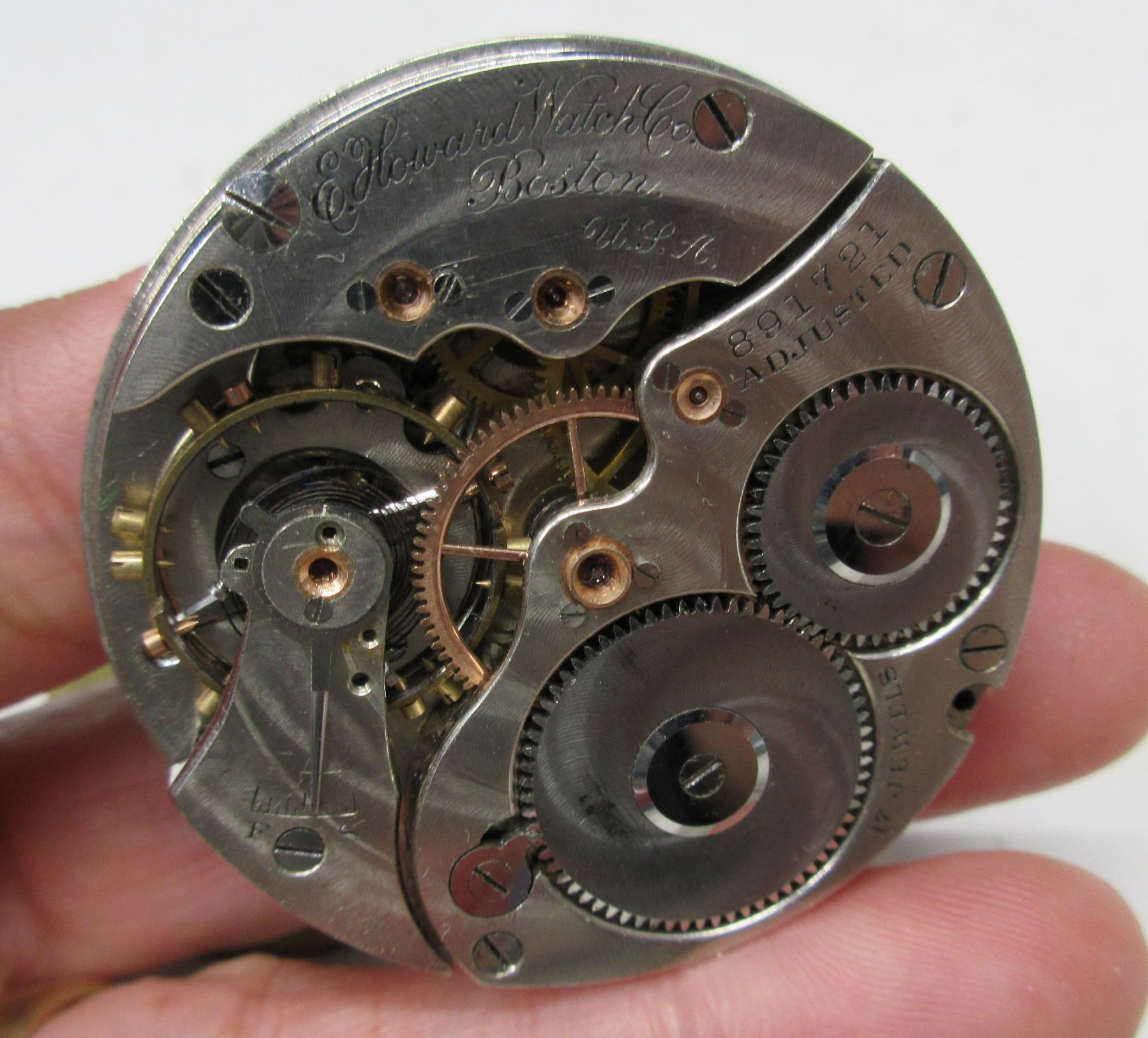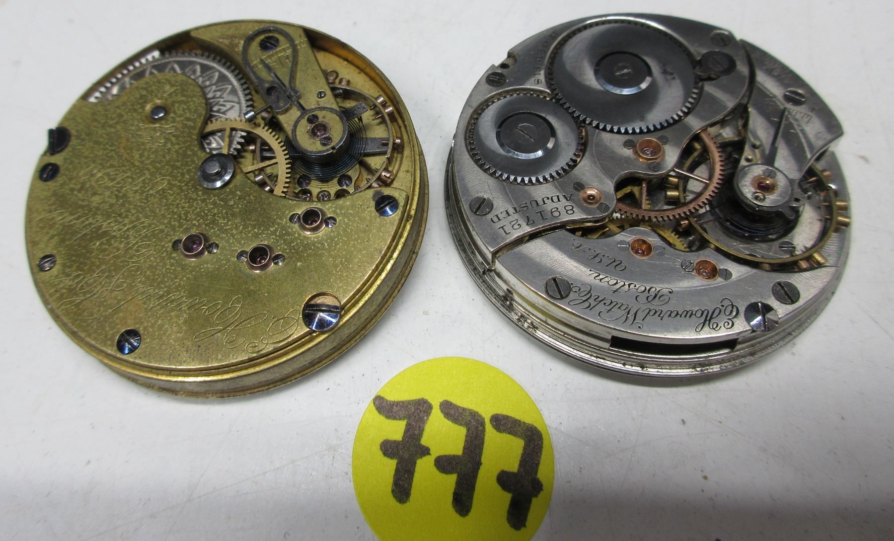 2 VINTAGE E.HOWARD POCKET WATCH MOVEMENTS, 1 RUNNING,1 NOT