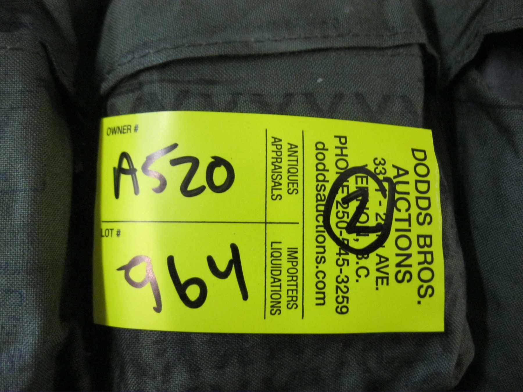 Attendance at the auction preview, or removal of purchased lots by purchaser/bidders and guests is done at their sole risk. Dodds Auction assumes no risk or liability, statutory, common law or otherwise whatsoever for the safety of those attending at the auction premises.