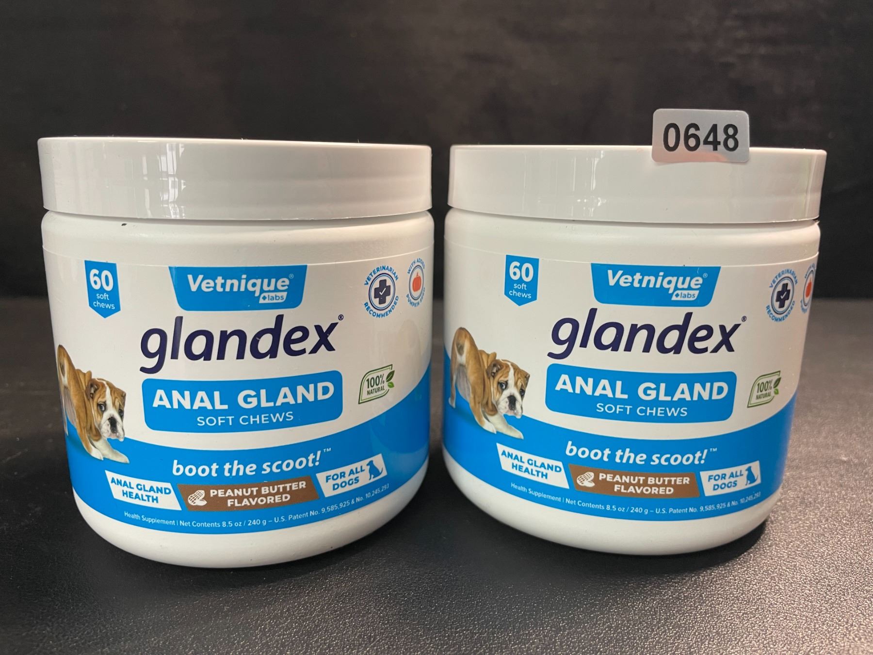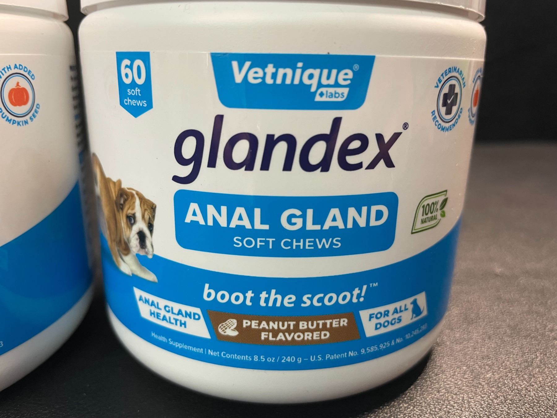 2 Vetnique Labs Glandex Anal Gland Soft Chews for Dogs - Peanut Butter Flavor - 60 Soft Chews Each