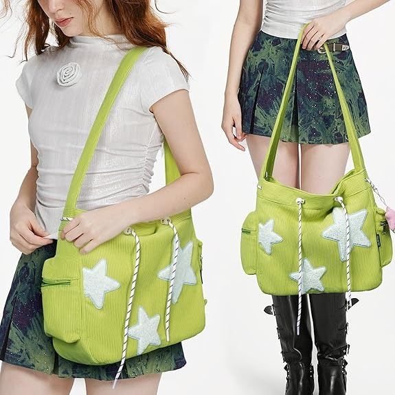 2 Women's Lime Green Corduroy Crossbody Bags/Purses - New