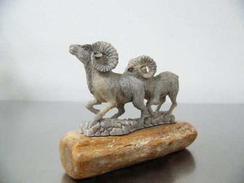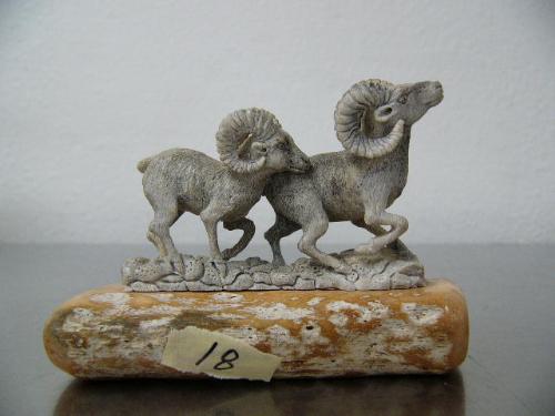 2 dall sheep carved in bone- 3-1/2"- mounted on fossilized bone- imported, not Alaskan ()