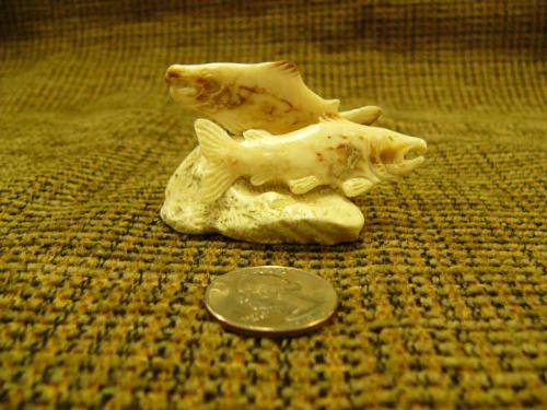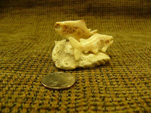 2 fossilized walrus ivory fish on bone base Imported (33)