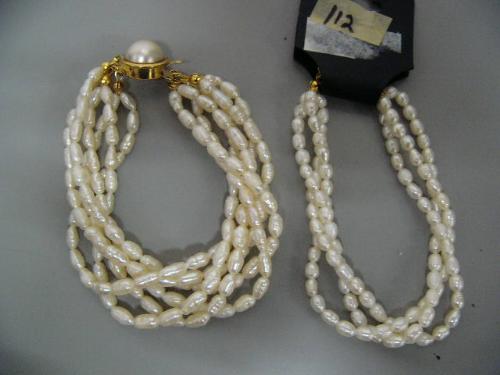 2 freshwater white pearl multi-strand bracelets (2)