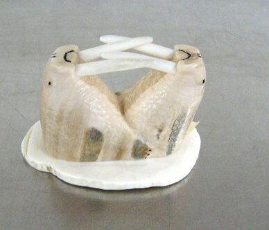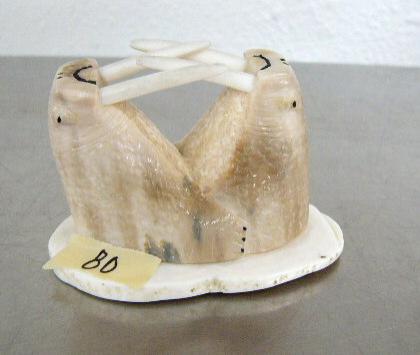 2 ivory fighting walruses on ivory base ()