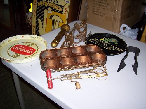 2 muffin pans, 2 serving trays, shears, ice skates & flash lite