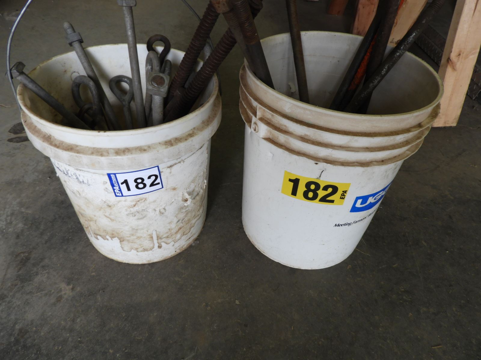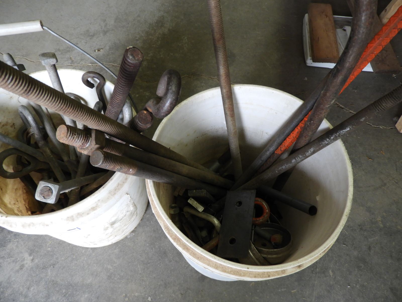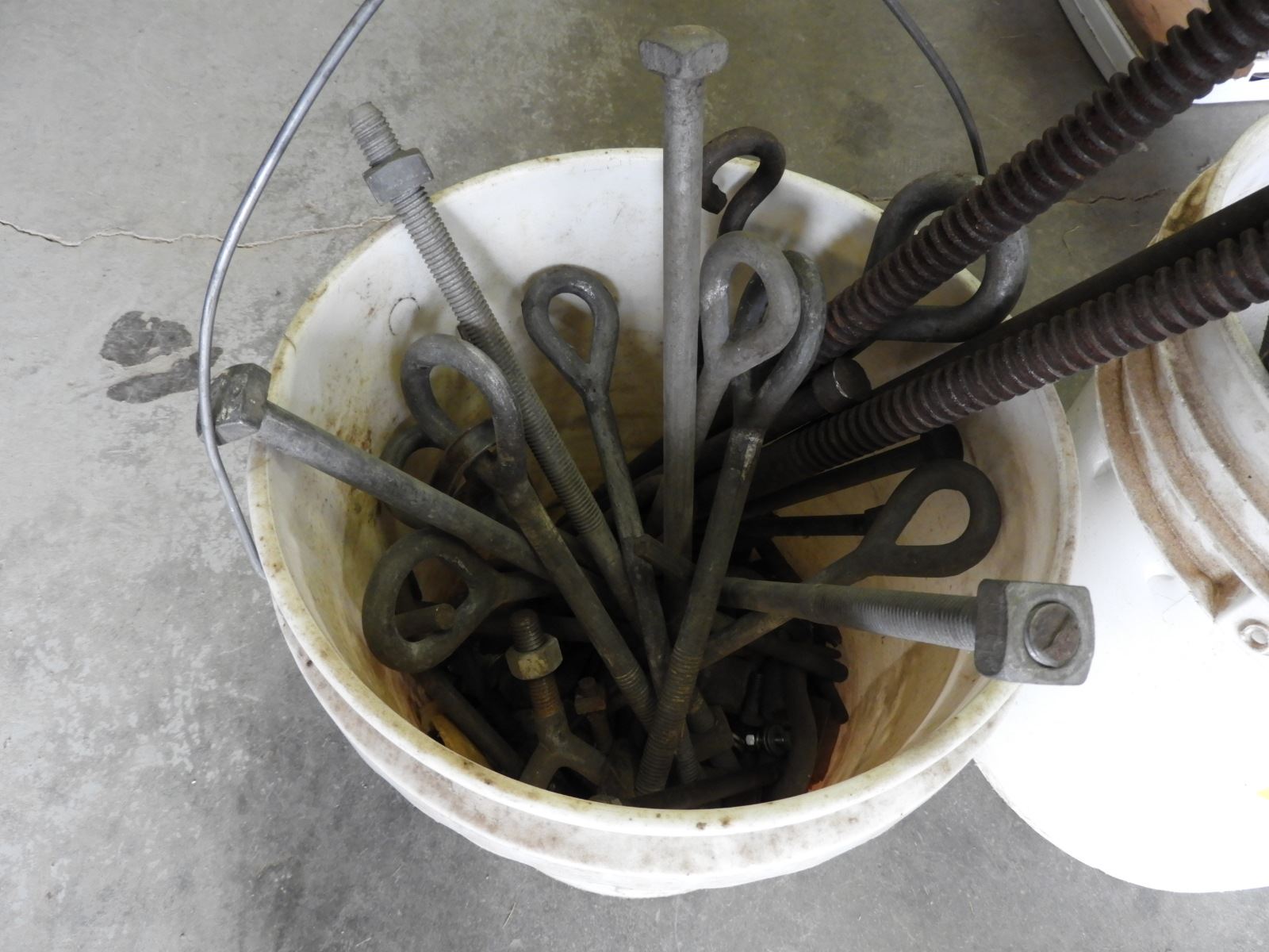(2) pails long fencing bolts, eye bolts, ready rod, Pail #1 -50lbs, Pail #2- 55lbs