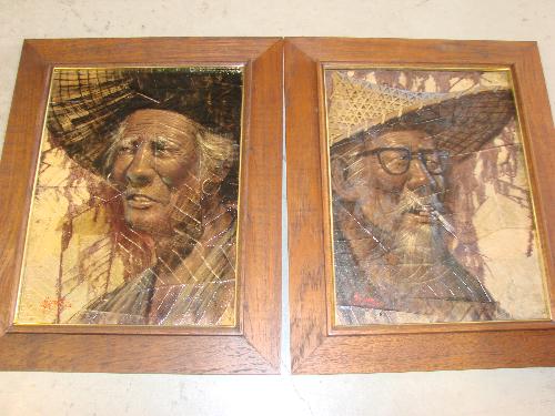 2 paintings on leaves, signed Maitree apprx. 16"x21", oak frames