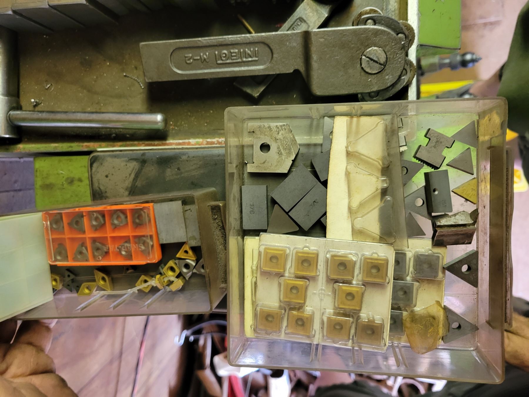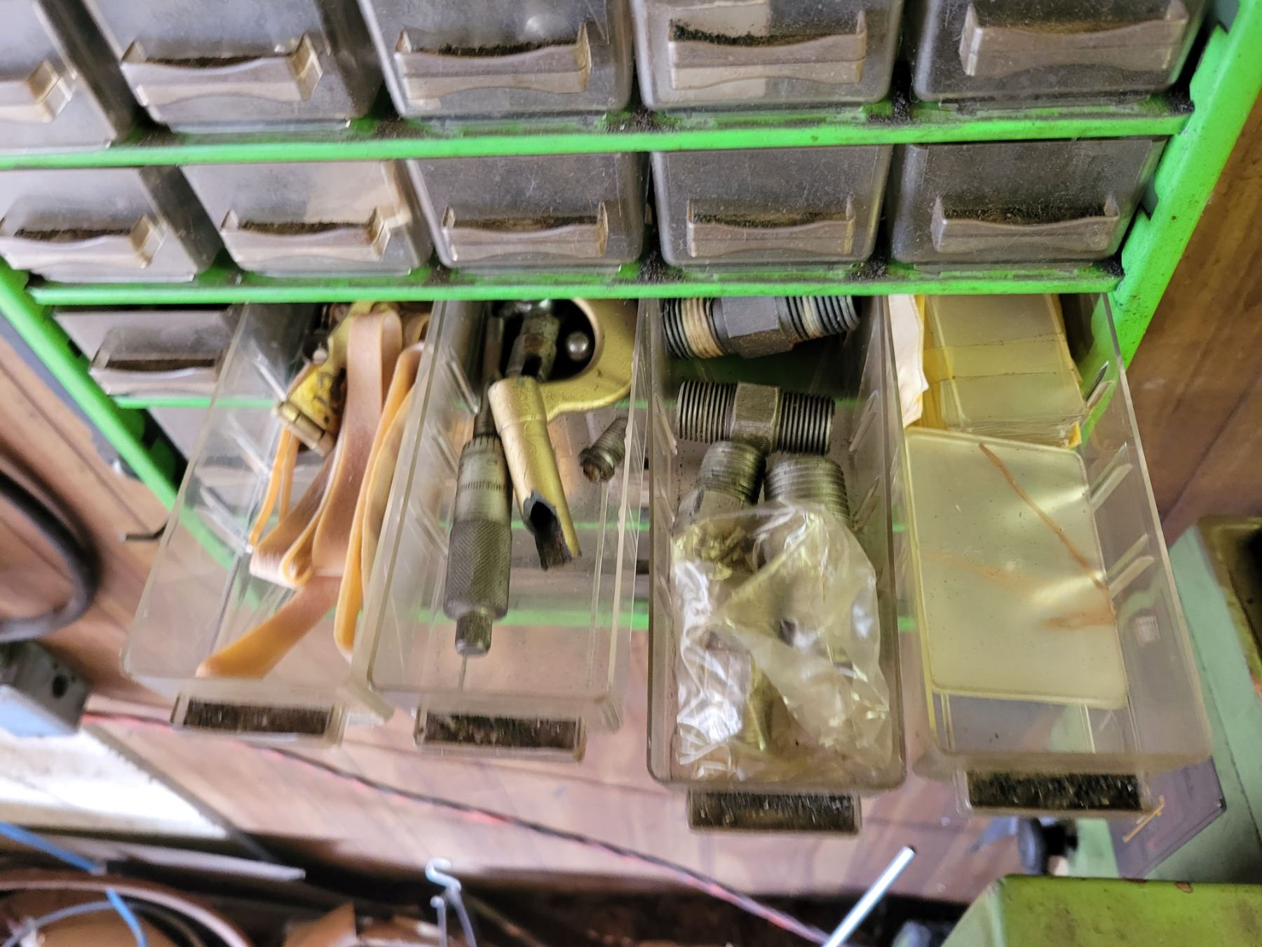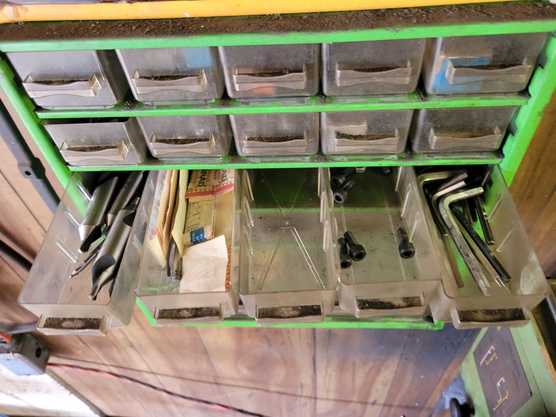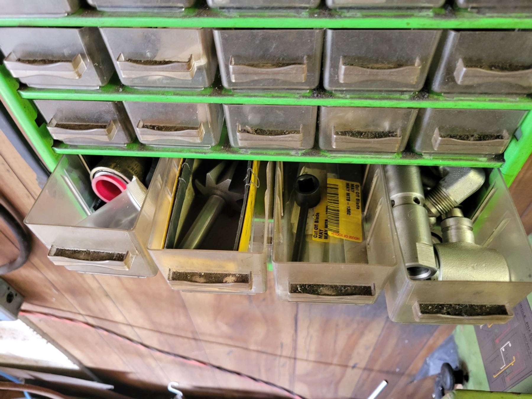20 drawer tool storage unit and 9 drawer tool storage unit. Both containing qty of NEW inserts, center drill bits, fittings, lathe supplies etc.