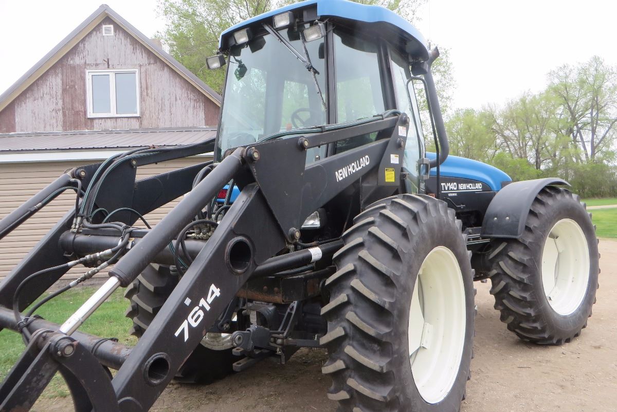 16.9x 38 tires 7614 loader, w/ bucket and grapple fork, 3pth and ptos on engine and draw bar ends, serial #D203936, 1307 Original hrs, believe it