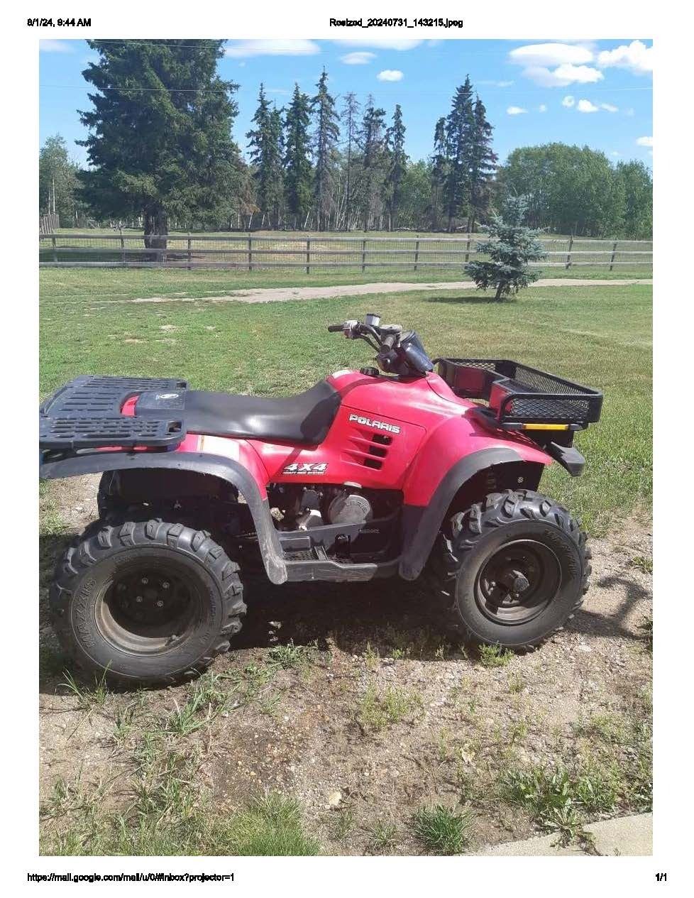 2000 Polaris 425 Expedition quad runs great with storage compartments (Was just lake quad) 4XACK42A84C099608 (Original Owner) PH Kirby- (780) 910-1461. Directions: From Vinca Bridge go east 6 km on hwy 38 to junction of 38 and 45. Turn left onto RR202 and go 3km north to TWP. RD. 572 turn right and go 1/4-mile, first farm house on the left white siding and blue roof.