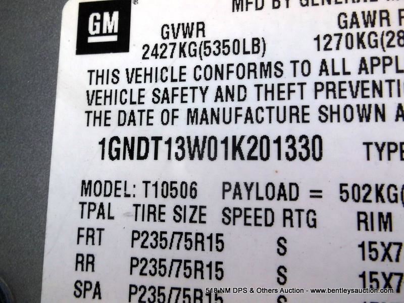 2001 CHEVROLET BLAZER ~ 123,608 MILES VIN: 1GNDT13W01K201330, SILVER, SUV, 4WD, V6, 4.3L, EMPTY FUEL, A/C COLD, WINDHSIELD-ROCK CHIPS, NMGF TITLE # 151901GSD314888 2 KEYS G47633