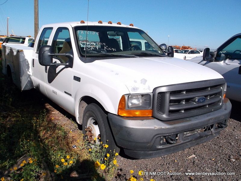 2001 Ford F350 Super Duty Pickup, 215,411 Miles VIN: 1FDWW36F01EB70865, Pickup, Crew Cab, Utility Bed, 2WD, RWD, DRW, Title # 132401GSD988701 5 Keys FA16138