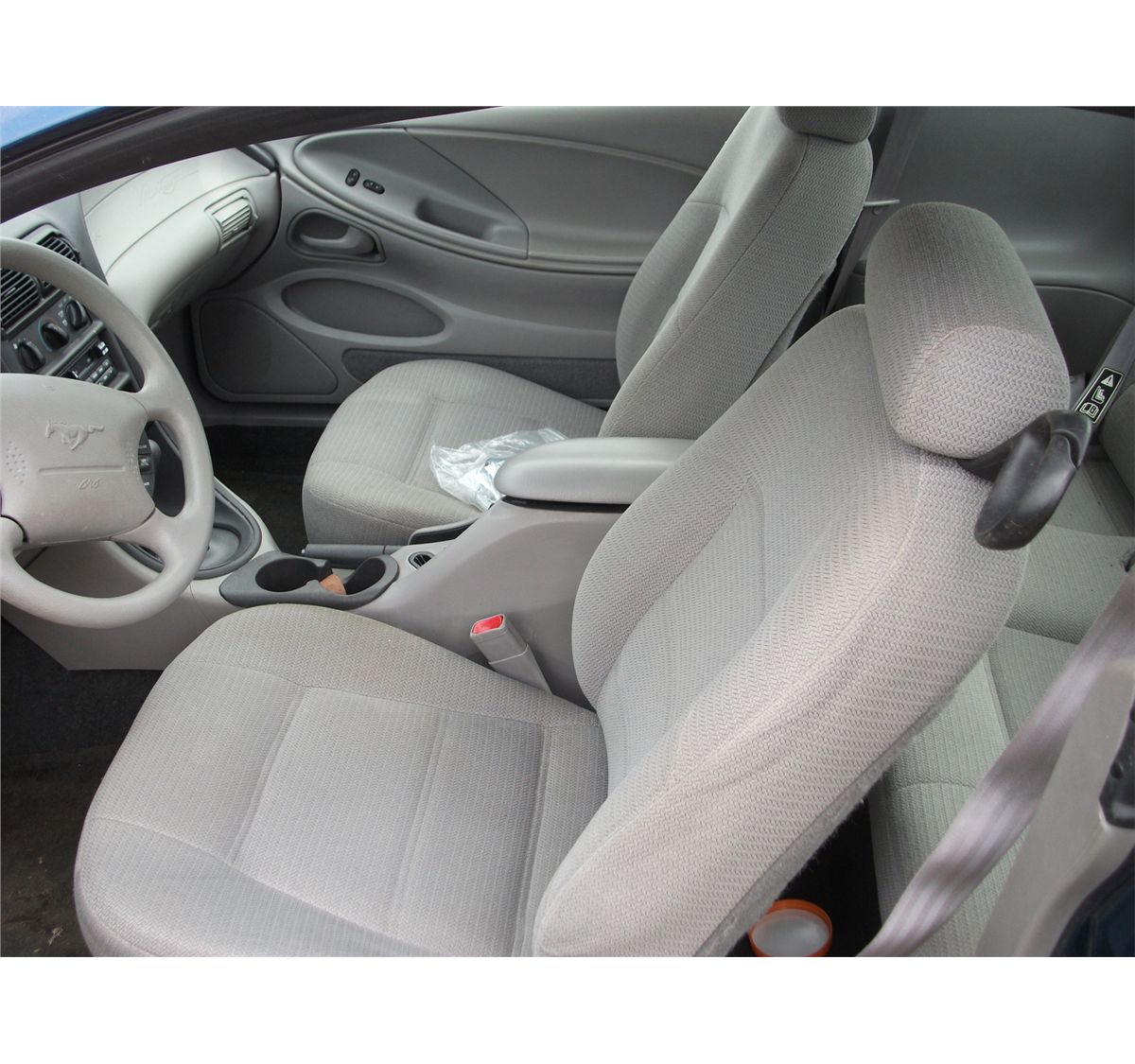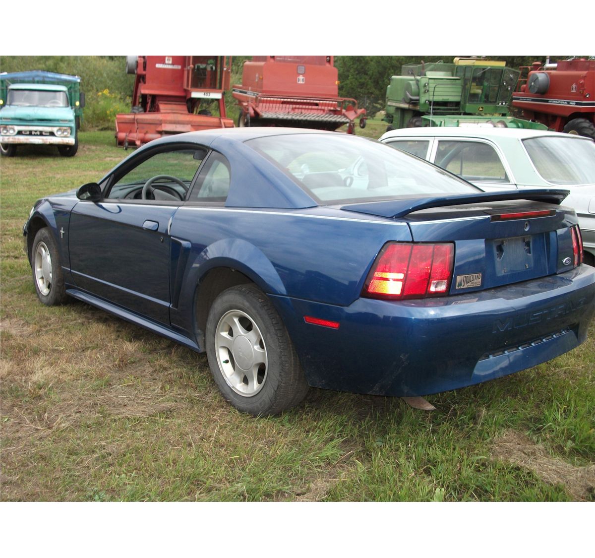 blue; showing 230,414 km; power windows; power locks; automatic; cloth interior; cruise; tilt; 3.8 L engine; damage on driver's door and front panel; SN #1FAFP4045YF143363