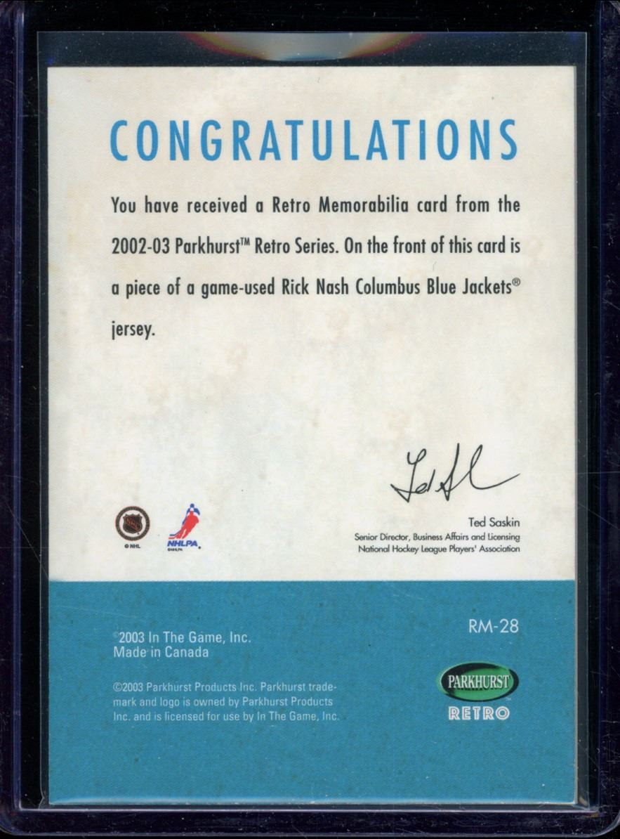 2002-03 Parkhurst Retro Memorabilia #RM28 Rick Nash Vault 1/1 BV 460