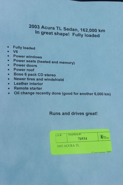 VIN: 19UUA56673A803976 Miles: 162,000 KMS Engine: V6 3.2 LTR. Color: GOLD FULLY LOADED, POWER WINDOWS, POWER SEATS (HEATED &