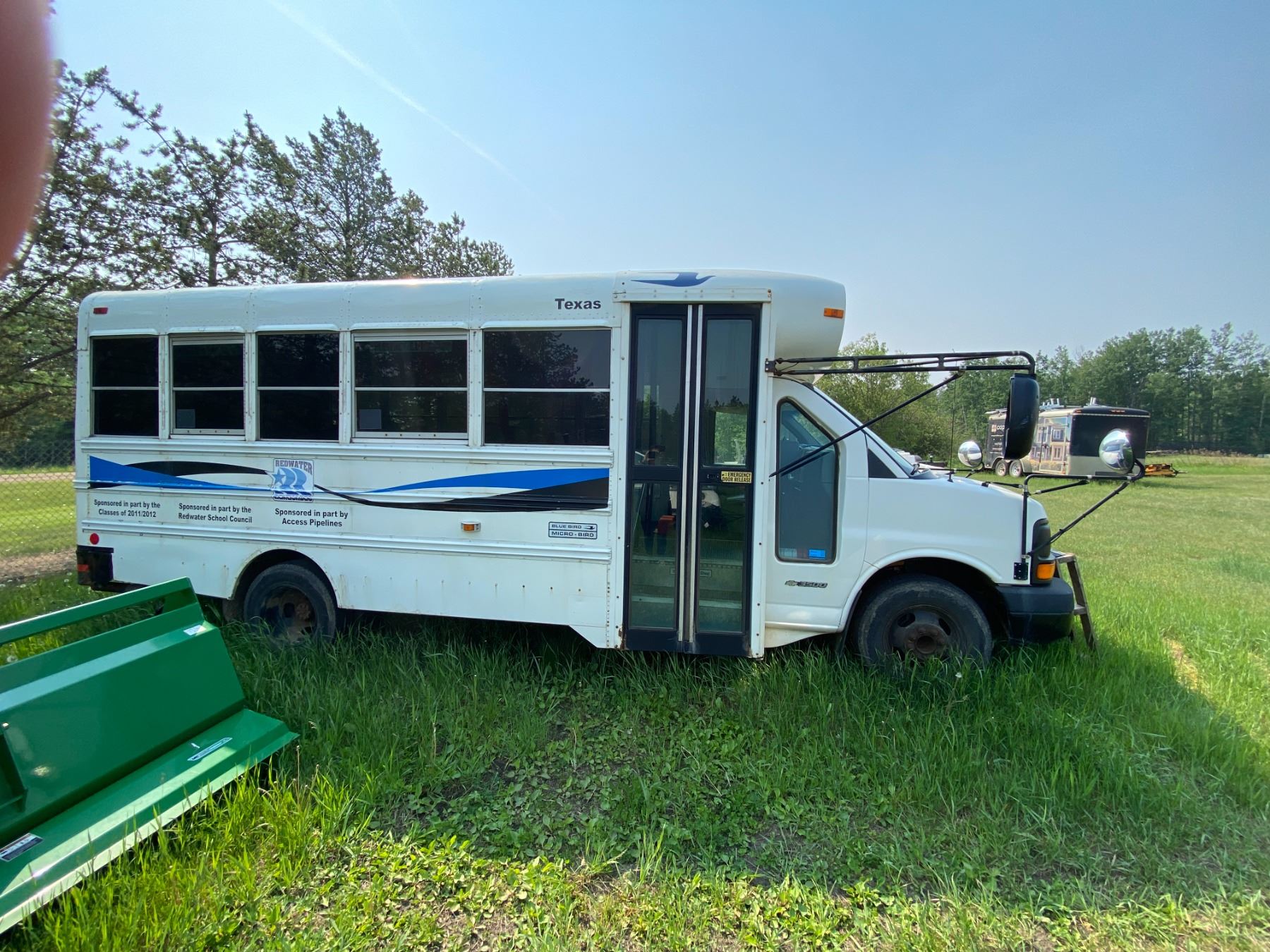 2004 Chev 3500 20 Passenger Bus, V8, Auto, 93,205 kms. s/n 1GBJG31E141147743 Last Certified to March 2025 Runs and starts nice. Came from the Redwater High School