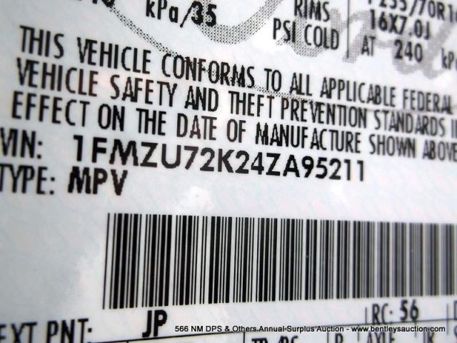 2004 FORD EXPLORER 4WD ~ 136,902 MILES VIN: 1FMZU72K24ZA95211, SUV, 4WD, V6, 4.0L, GREY, AC COLD, SPOT LIGHT, 1/4 TANK GAS, NMGF TITLE #: 04103134A289677 2 KEYS 2 FOBS G-57998 G-57998