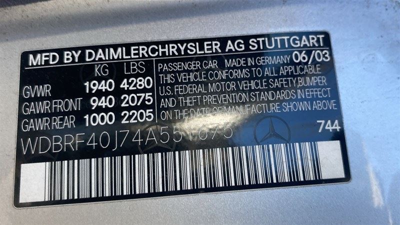 PAPER WORK : T EXPIRATION : 8.1.2024 VIN : WDBRF40J74A551675