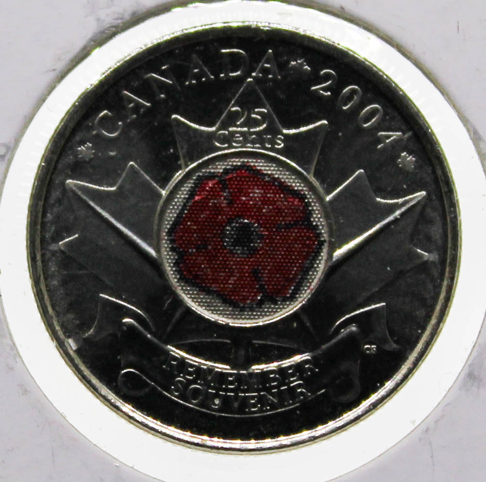 2004 REMEMBRANCE DAY CANADA POPPY 25 CENT