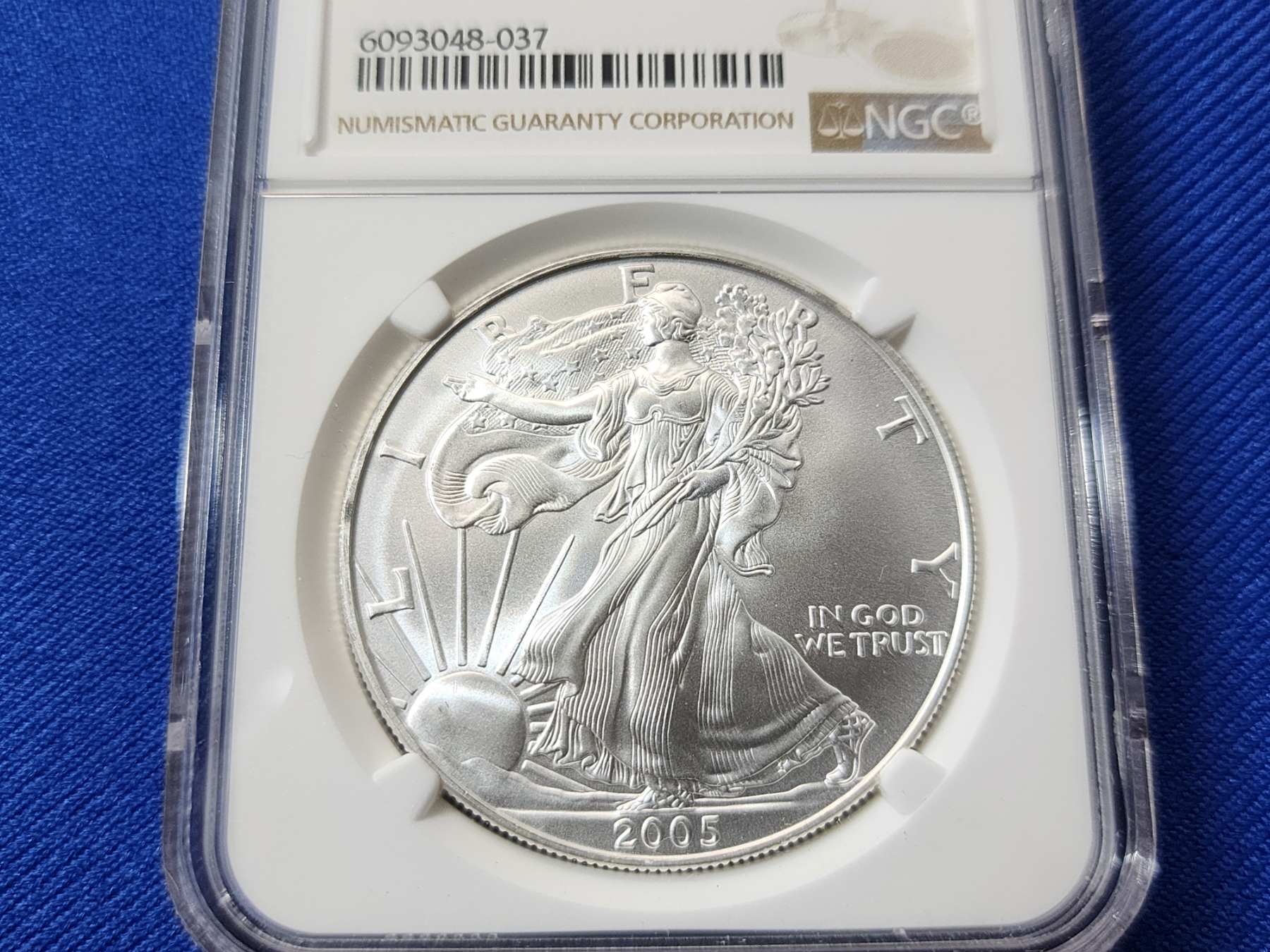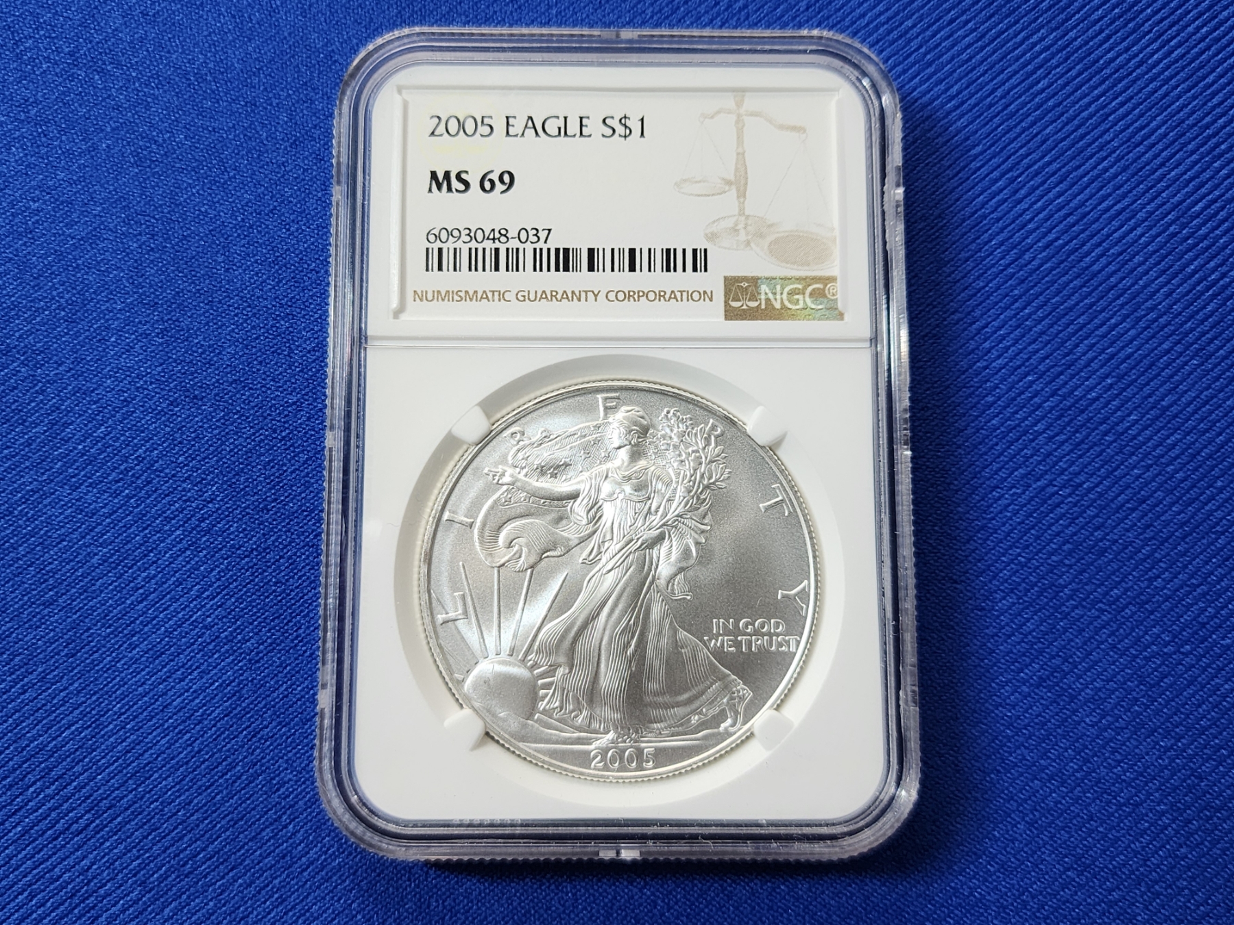 2005 $1 American Siver Eagle 1 oz Fine Silver Graded by NGC MS 69