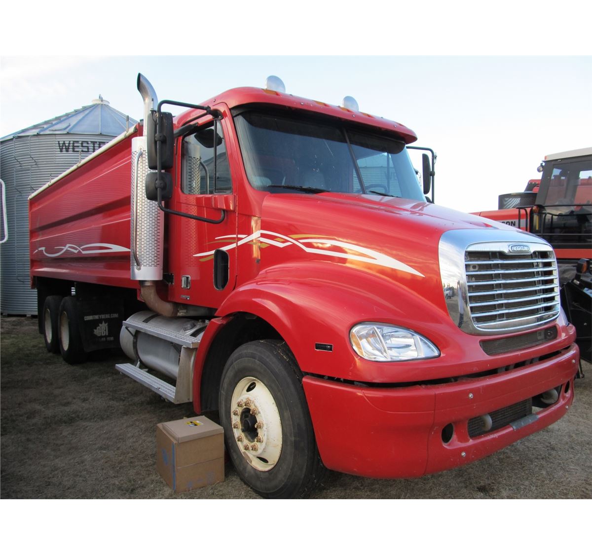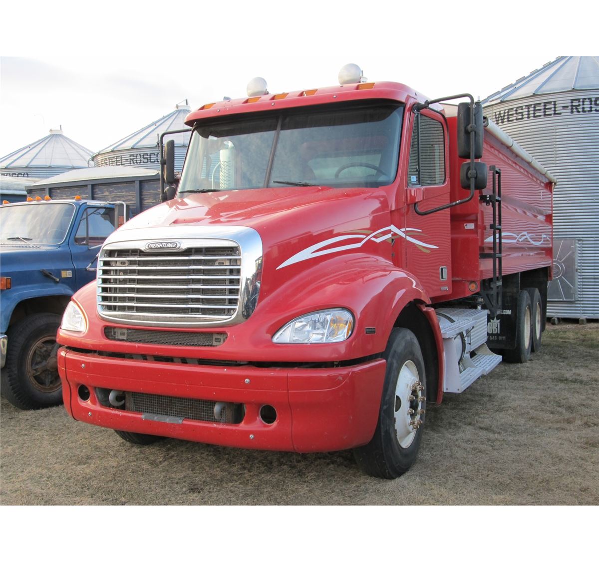 c/w 20'x60" Courtney Berg steel box and hoist; roll tarp; 465 Mercedes engine; automatic transmission; air ride; rear hoist control; box interior light kit; 11x22.5; showing 294,667 km; SN #1FVJF0CV55PN27890